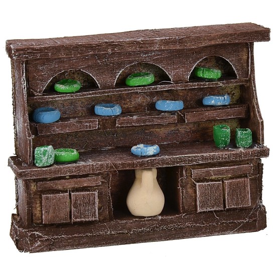 Gran aparador de madera envejecida compuesto en la parte inferior por compartimentos cerrados con dos puertas, cajoncitos y en el centro un espacio abierto con ánfora de terracota, en la parte superior cajones y estantes a la vista con porcelanas de colores y que se puede completar con las MINUTERIE disponibles en nuestra tienda. El artículo ha sido producido por artesanos italianos y se recomienda para estatuas de 6 cm de altura. En los productos relacionados debajo de la tabla hay otros complementos de decoración de la misma serie para completar sus ambientaciones.