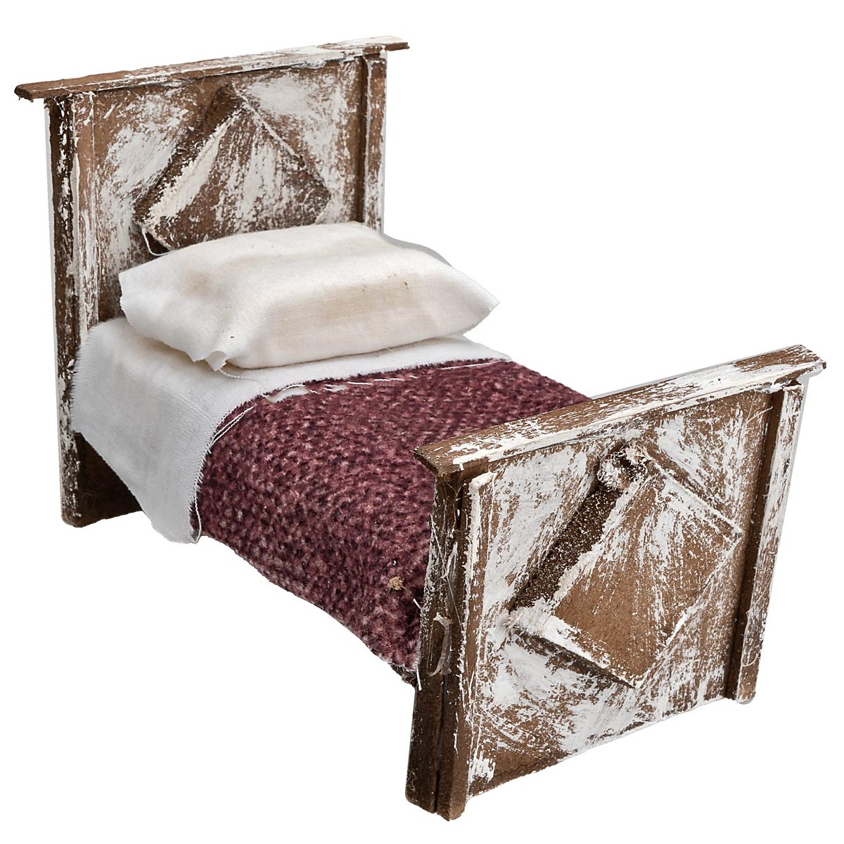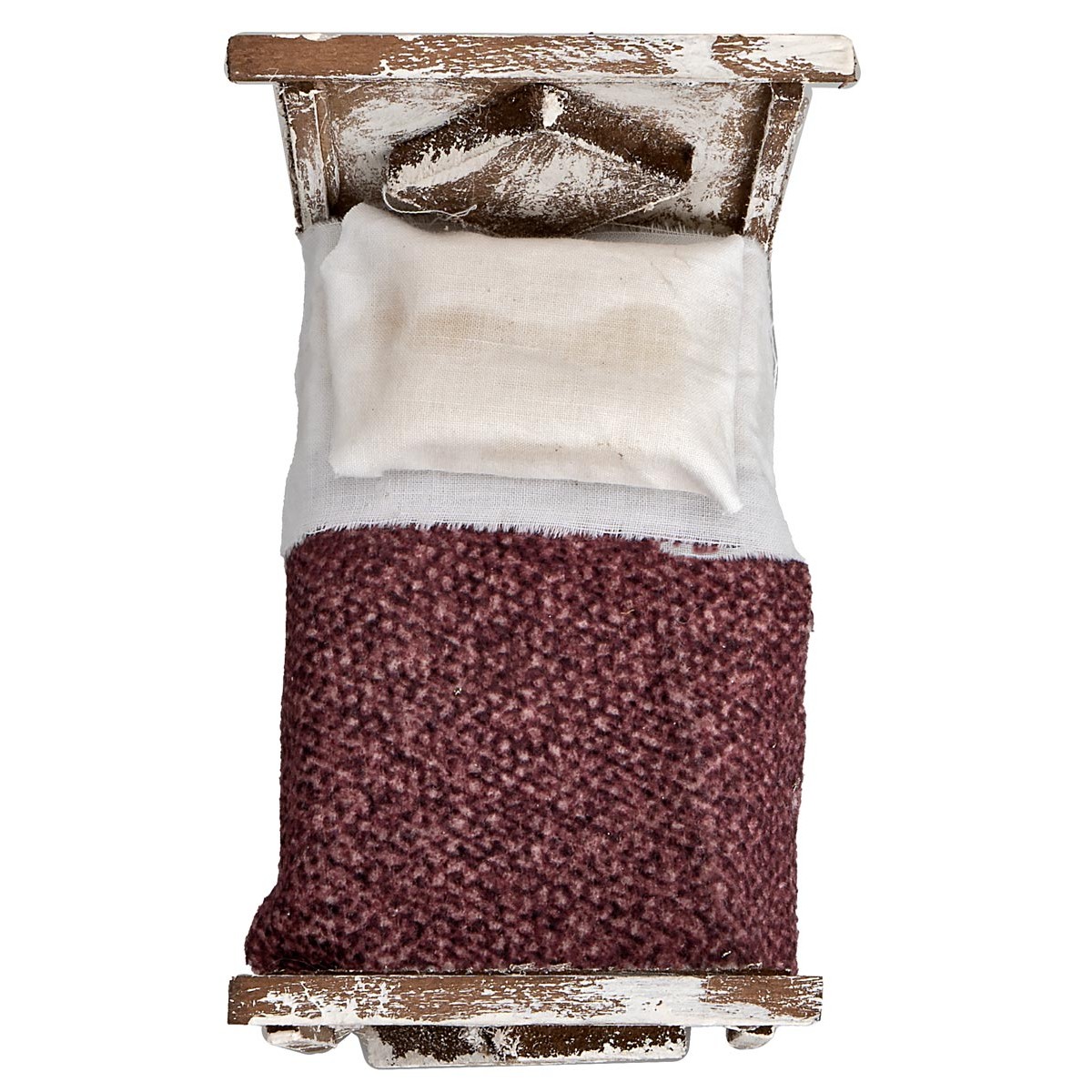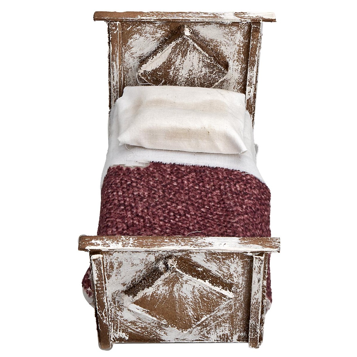 Cama de madera con cobertores de tela, recomendada para estatuas de 7-8 cm.