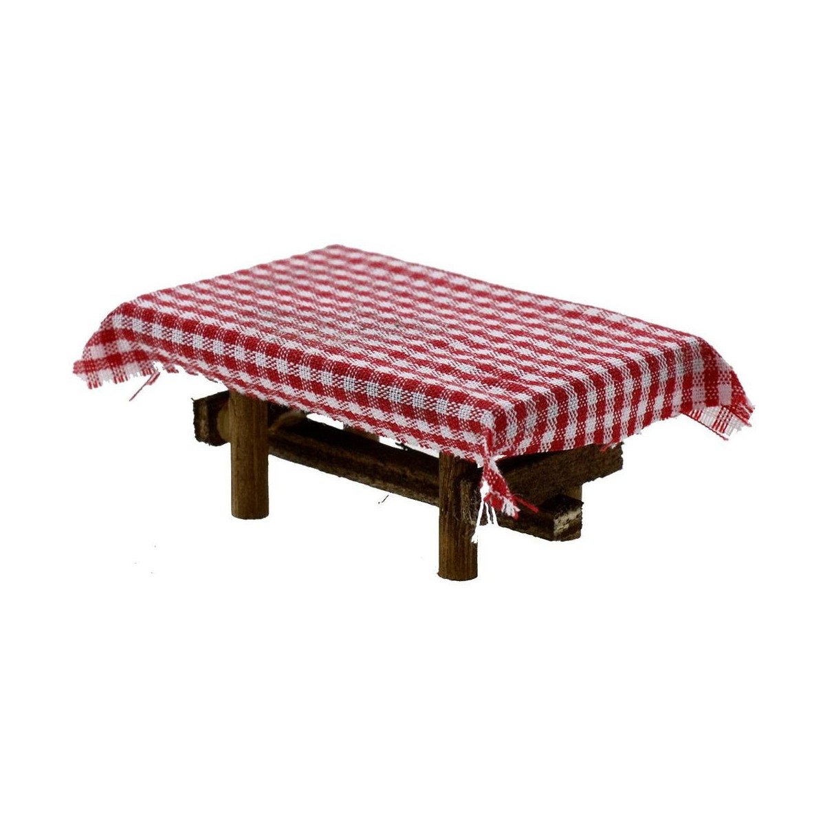 Mesa de madera con mantel y 4 sillas, recomendado para estatuas de altura 6-7 cm.