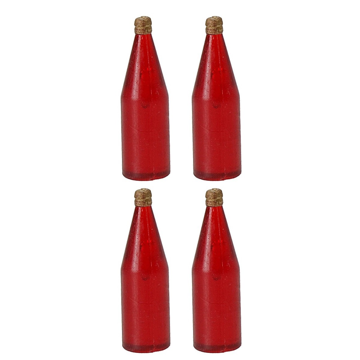 Conjunto de 4 botellas rojas de plástico con efecto vidrio recomendadas para estatuas de 12 cm de altura, estas piezas de miniatura enriquecerán los escenarios del Pesebre hecho a mano.