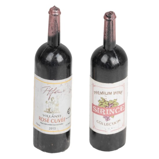 Set de dos botellas de vino en PVC, ideal para enriquecer tu belén hecho a mano. Este set es recomendado para estatuas de altura entre 10 y 15 cm, perfecto para añadir autenticidad y detalle a la escena.