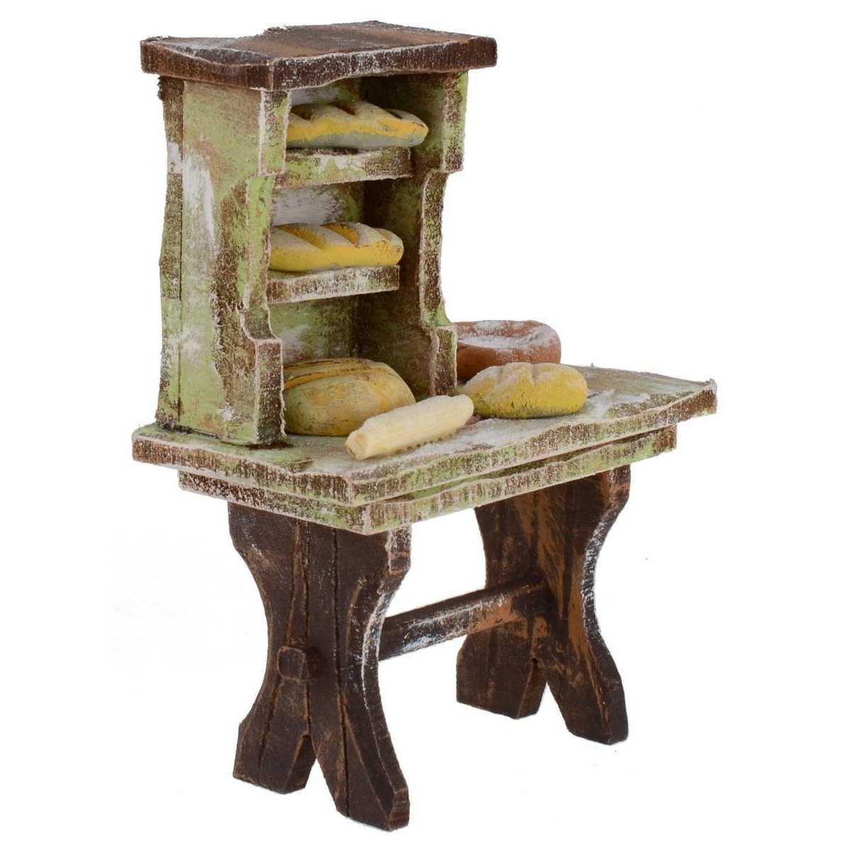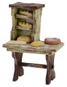Banco de trabajo de un panadero para Belén en madera, equipado con miniaturas de terracota y madera, realizado completamente a mano y recomendado para estatuas de altura de 10 cm.