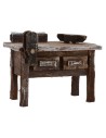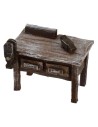 Banco de trabajo de madera de un carpintero para Belén, equipado con miniaturas (herramientas de trabajo) de madera, realizado completamente a mano y recomendado para estatuas de altura de 12 cm.