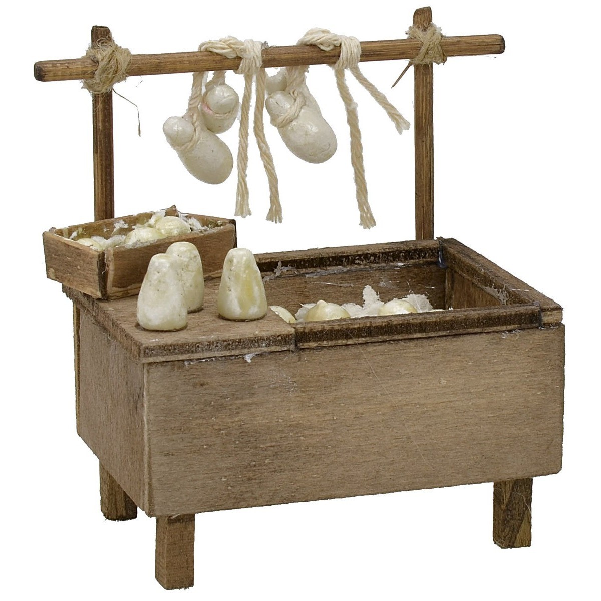 Banco con quesos frescos y tina con mozzarellas. Este artículo ha sido realizado por artesanos italianos y es recomendado para estatuas de altura 10-12 cm. Se precisa que al ser un artículo artesanal producido a mano podría variar ligeramente respecto a la foto. En la sección MINUTERIE están disponibles muchos accesorios para belén para combinar y personalizar y enriquecer este producto.