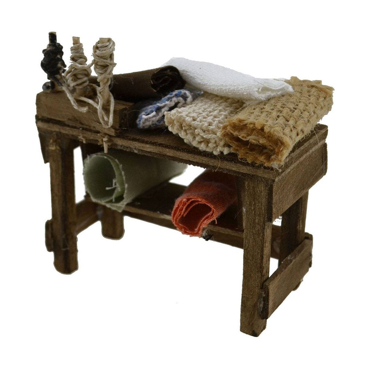 Banco de trabajo para costurera realizado artesanalmente, recomendado para estatuas de 10 cm. Al ser un producto completamente hecho a mano, la foto puede variar ligeramente.