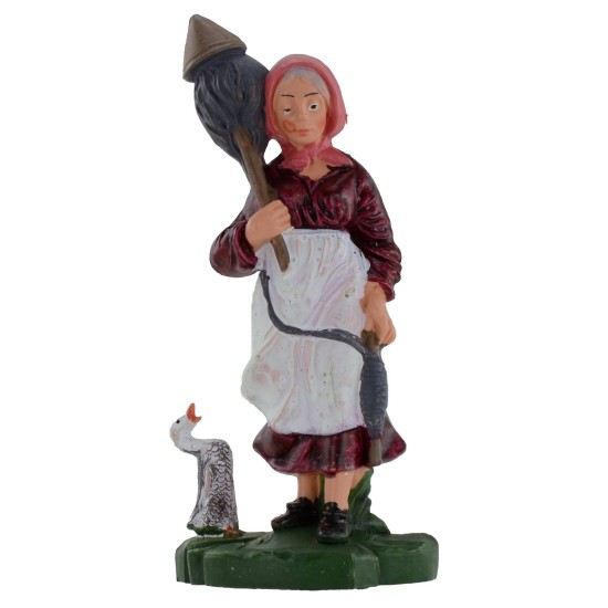 Mujer hilando. Estatua bien acabada para el Belén, de la serie de 10 cm, realizada en pvc. El personaje tiene una altura real de aproximadamente 11 cm (incluida la base).