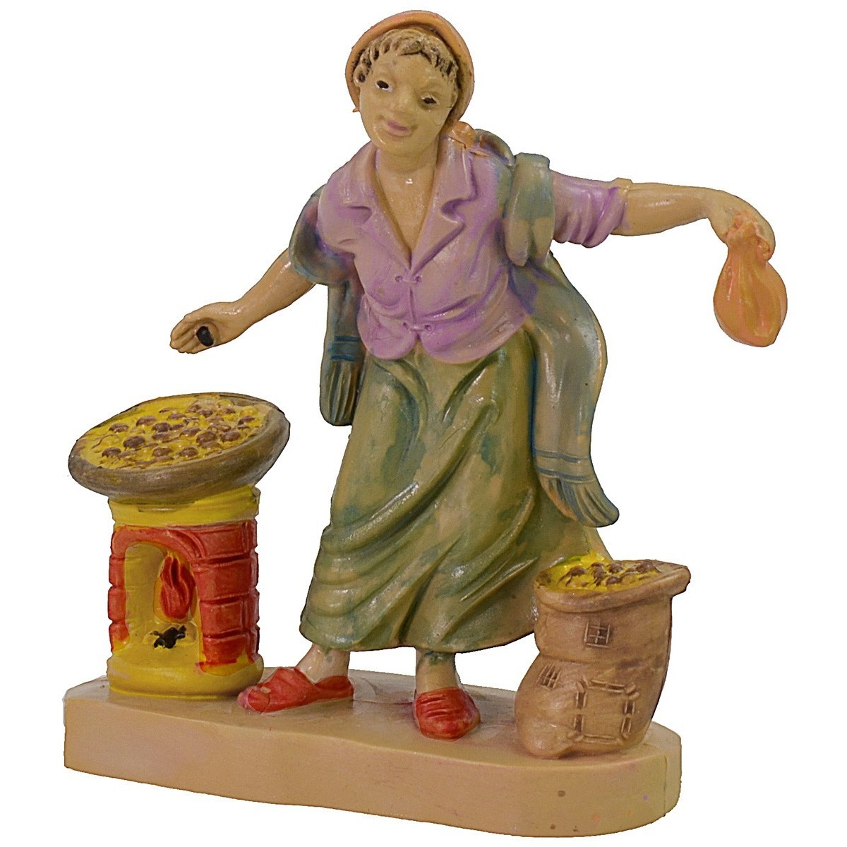Mujer que asa castañas serie 10 cm en pvc.