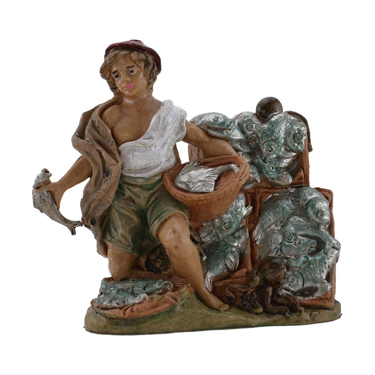 Vendedor de pescado serie 10 cm. En nuestra tienda encontrarás una amplia selección de estatuas para el belén en varios materiales y alturas.
