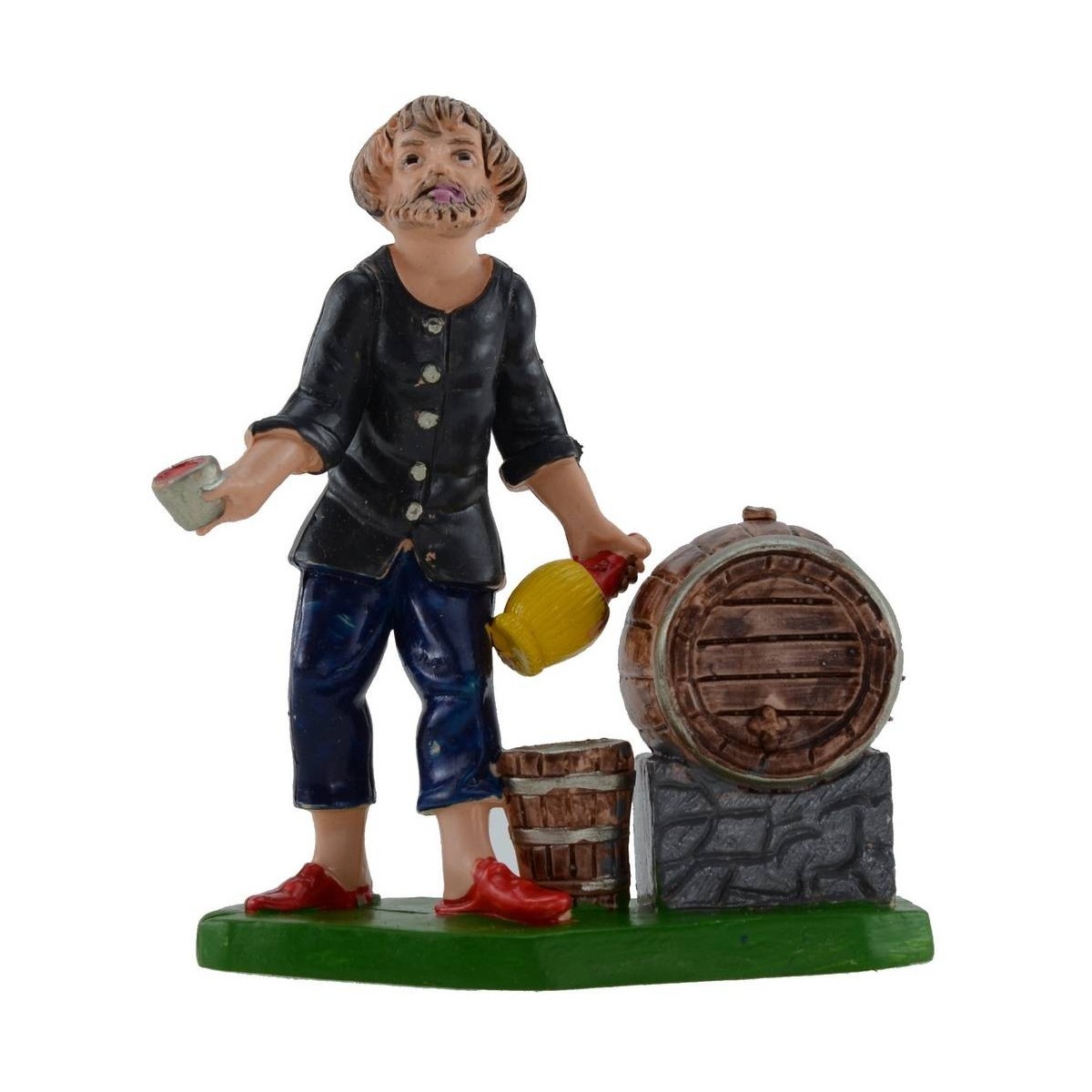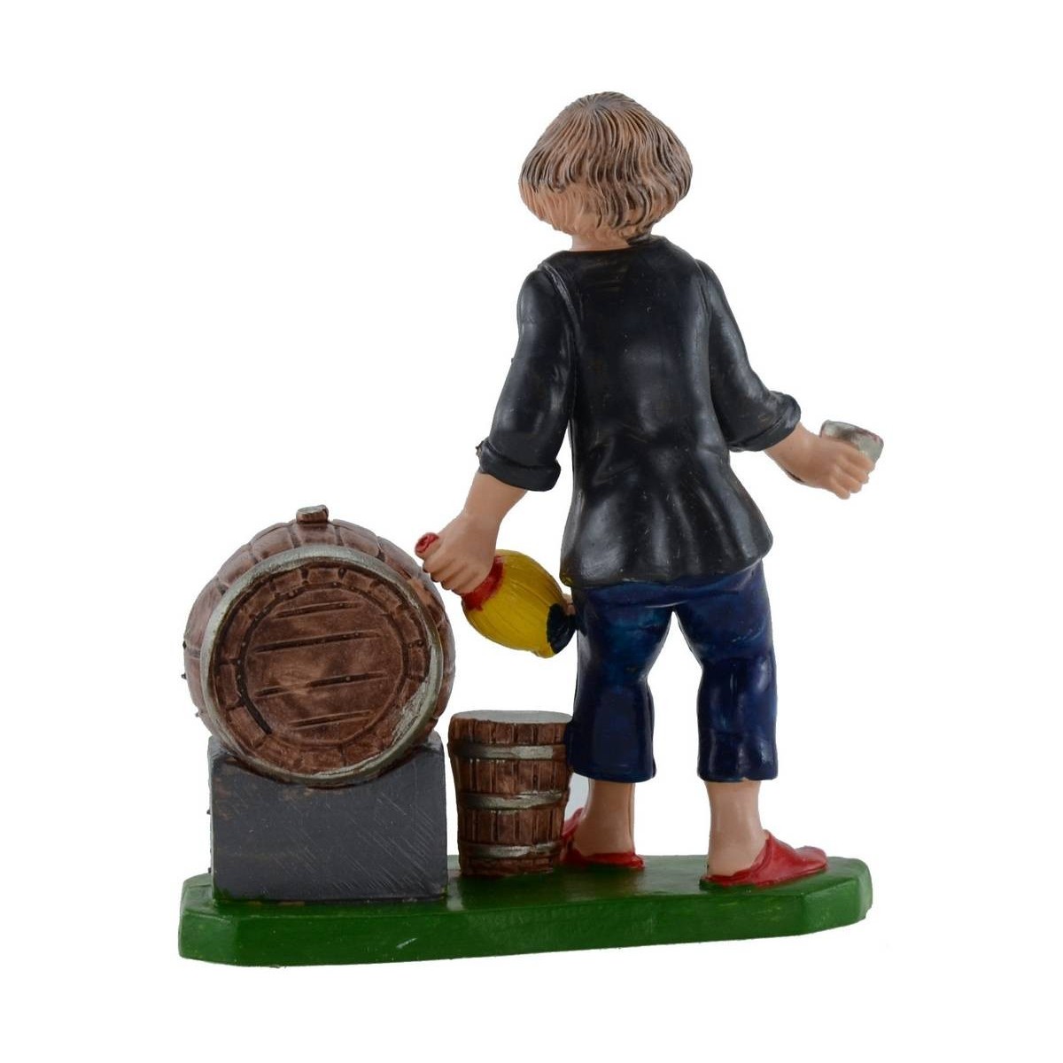Bebedor con frasco y barril 10 cm, estatua para belén en PVC.