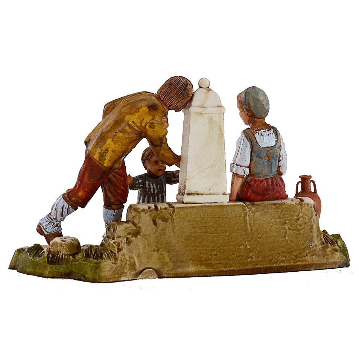 Mamá y papá con niño en la fuente, escena para belén serie Landi Moranduzzo 10 cm. Se precisa que la mencionada serie mide realmente alrededor de 8,5-9 cm de altura. Las estatuas de esta marca se caracterizan por el cuidado en la expresividad de los rostros y de cada detalle individual, de hecho, todas las series firmadas por Landi son producidas y pintadas a mano en Italia.