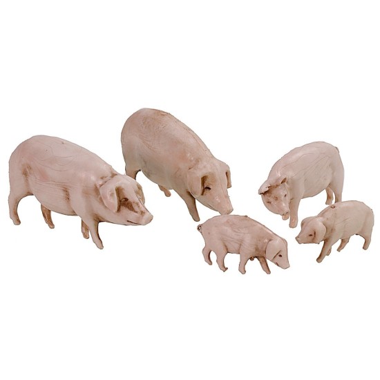 Set compuesto por 5 cerdos: 2 grandes, 1 mediano, 2 pequeños serie 10 cm Landi Moranduzzo. El artículo es recomendado para estatuas de altura 8-10 cm.