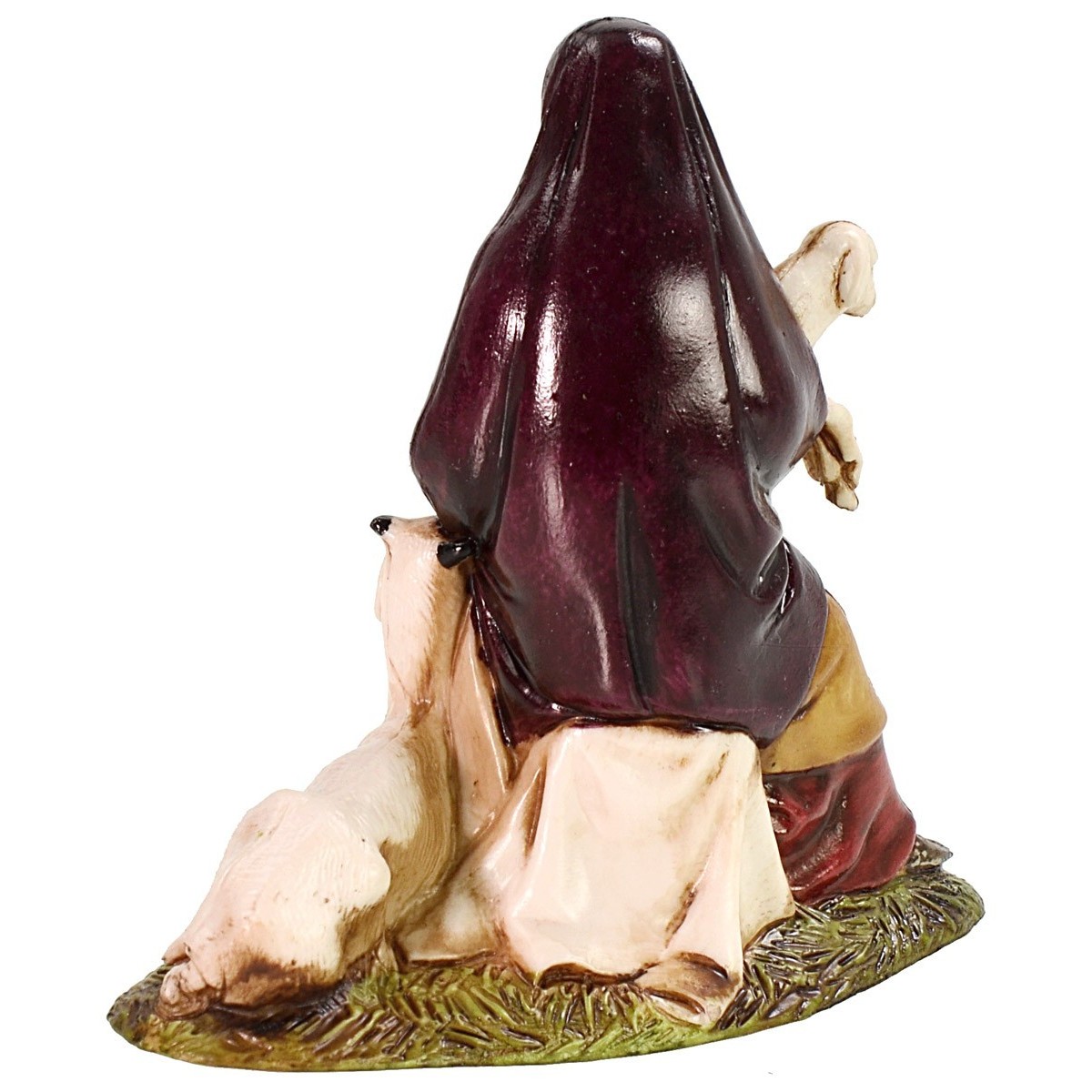 Mujer sentada con cabra y cordero en brazos serie Landi, Moranduzzo 10 cm. Se especifica que la serie mencionada realmente mide aproximadamente 8,5-9 cm de altura. Las estatuas de esta marca se caracterizan por el cuidado en la expresividad de los rostros y cada detalle individual, de hecho, todas las series firmadas por Landi son producidas y pintadas a mano en Italia.