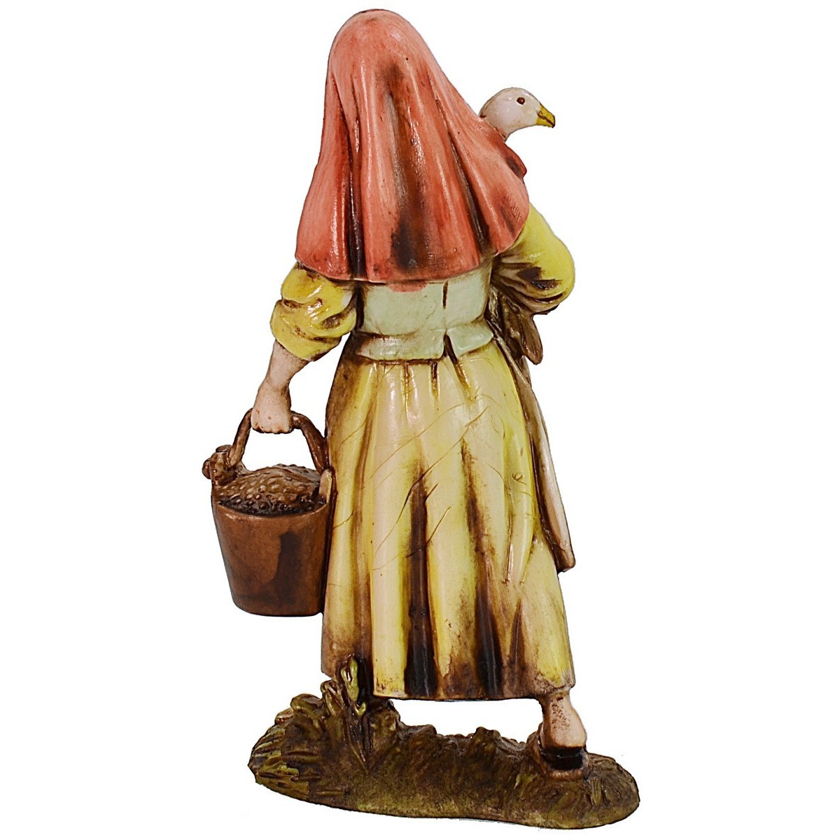 Campesina con oca en brazo y cubo en mano serie 10 cm Landi Moranduzzo. Se precisa que la mencionada serie mide realmente alrededor de 8,5-9 cm de altura. Las estatuas de esta marca se caracterizan por el cuidado en la expresividad de los rostros y de cada detalle individual, de hecho, todas las series firmadas por Landi son producidas y pintadas a mano en Italia.