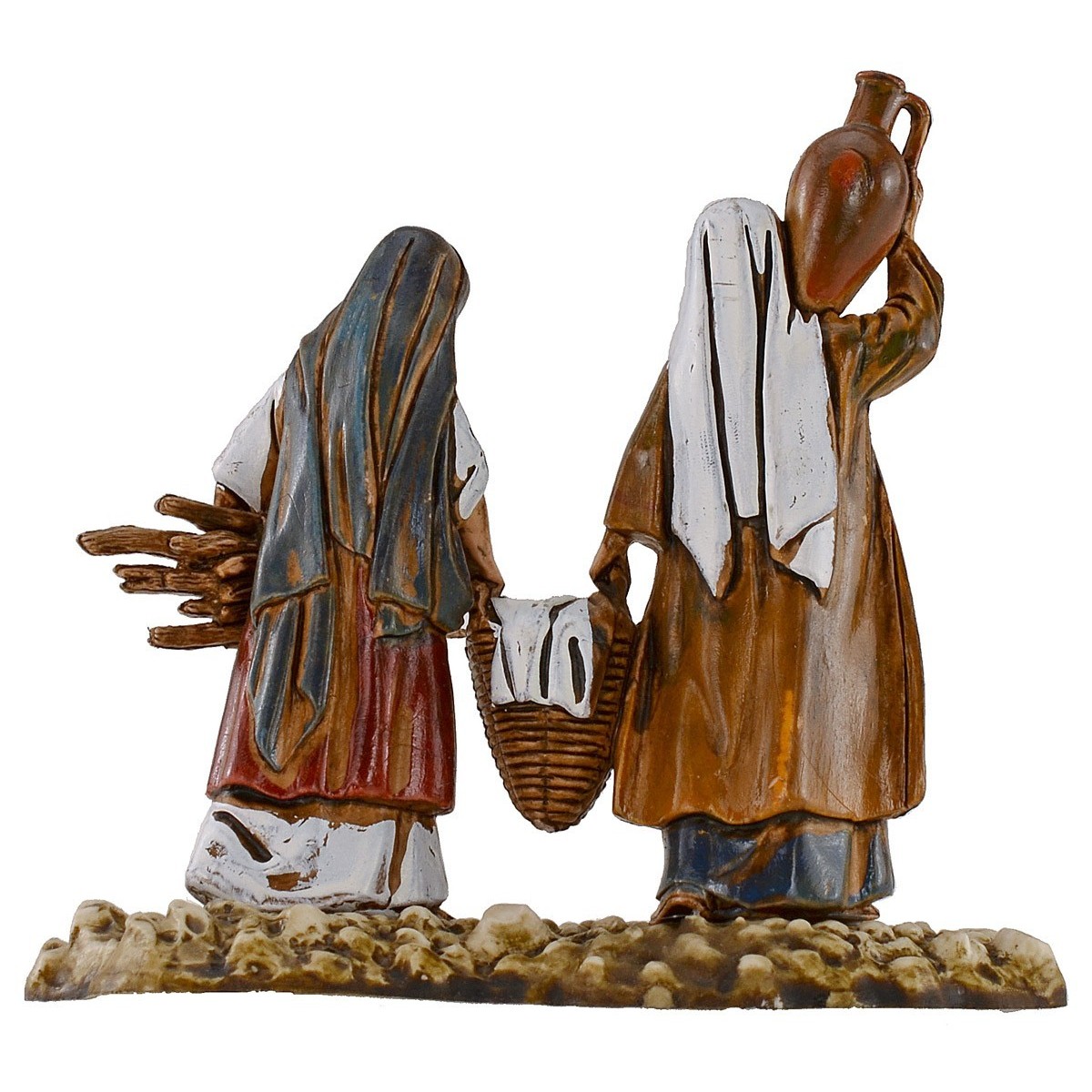 Escena con dos mujeres en trajes históricos con ánfora y haz de leña serie 10 cm Landi Moranduzzo. Se precisa que la mencionada serie mide realmente alrededor de 8,5-9 cm de altura. Las estatuas de esta marca se caracterizan por el cuidado en la expresividad de los rostros y de cada detalle individual, de hecho, todas las series firmadas Landi son producidas y pintadas a mano en Italia.