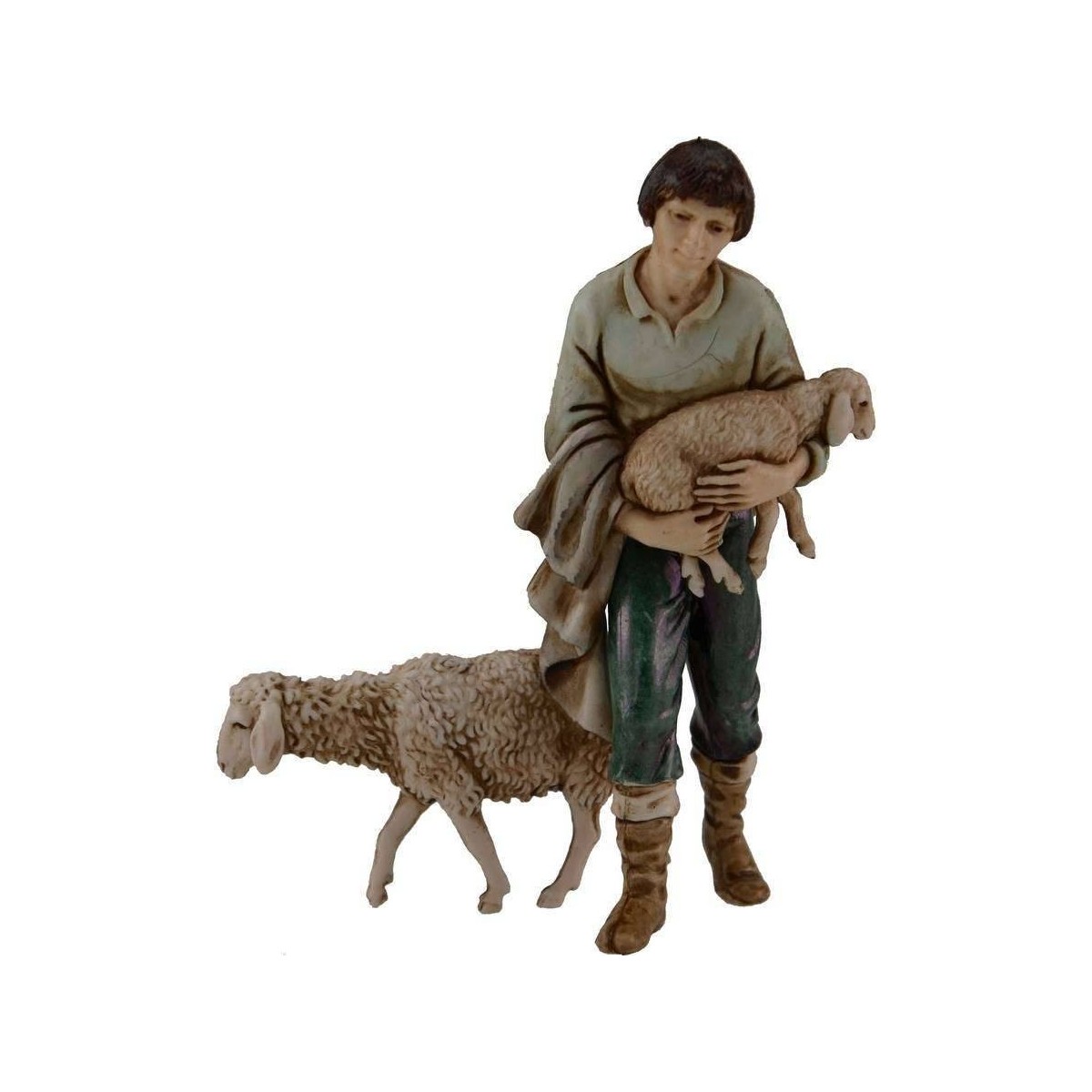 Set de 6 personajes para belén serie Landi Moranuzzo 11 cm compuesto por el Joven músico, el pastor con saco y perro, la mujer con ánfora, el hombre con leña y sombrero, el pastor con cordero y oveja y el gaitero.