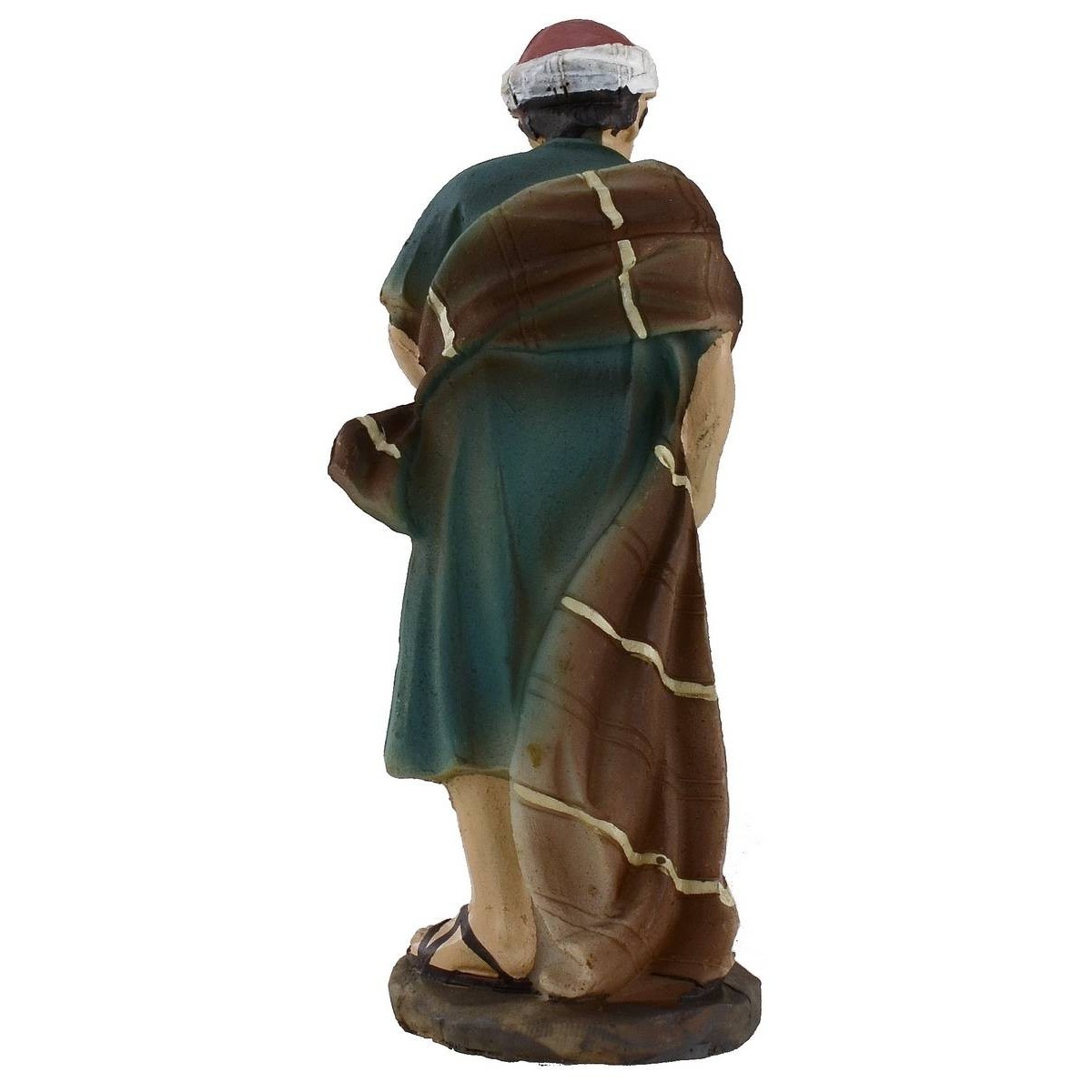 Pisadores de uva en resina pertenecientes a la serie de 15 cm. El pisador, sumergido en la tina de uvas, mide realmente 15 h cm, mientras que su ayudante mide 12,5 h cm. Las estatuas están bien acabadas en los detalles: están realizadas completamente en resina y pintadas a mano por hábiles manos artesanas. Los rostros son muy expresivos y detallados en los pormenores.