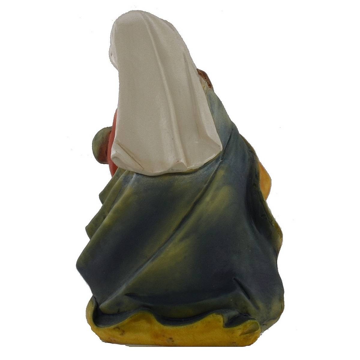 Natividad compuesta por: San José, María y el Niño Jesús. Todo el conjunto pertenece a la serie de 12 cm. Las estatuas están bien acabadas en los detalles: están realizadas enteramente en resina y pintadas a mano por hábiles manos artesanas. Los rostros resultan muy expresivos y detallados. Además, se hace presente que el Niño Jesús no está fijado a la cuna, sino que es móvil.