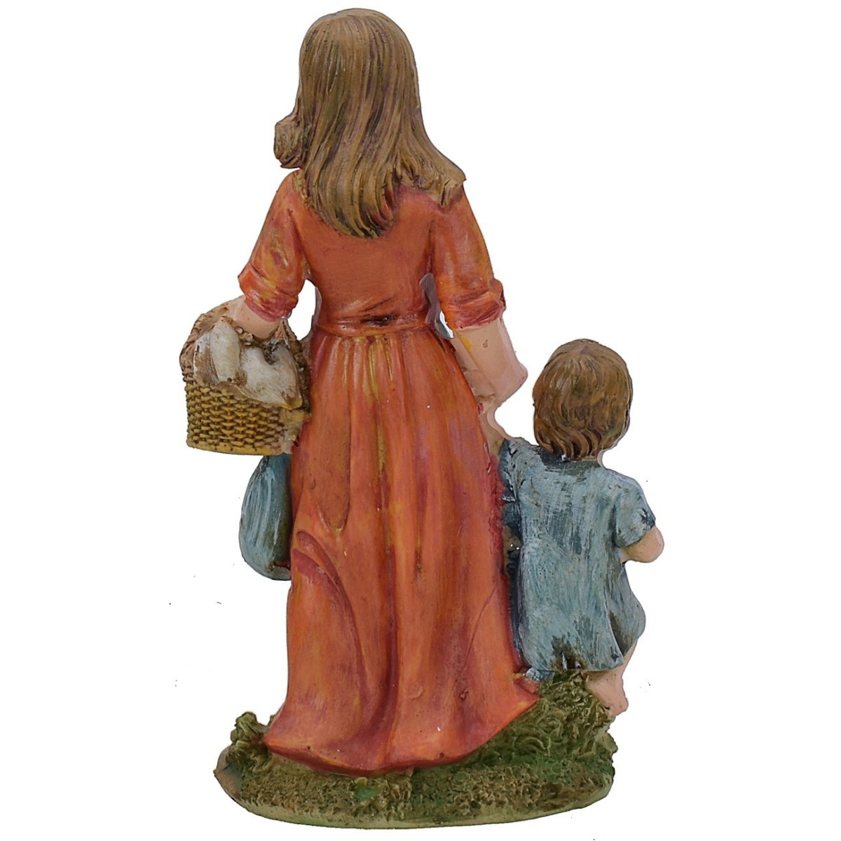Campesina con cesta y niño serie 15 cm en resina pintada a mano.