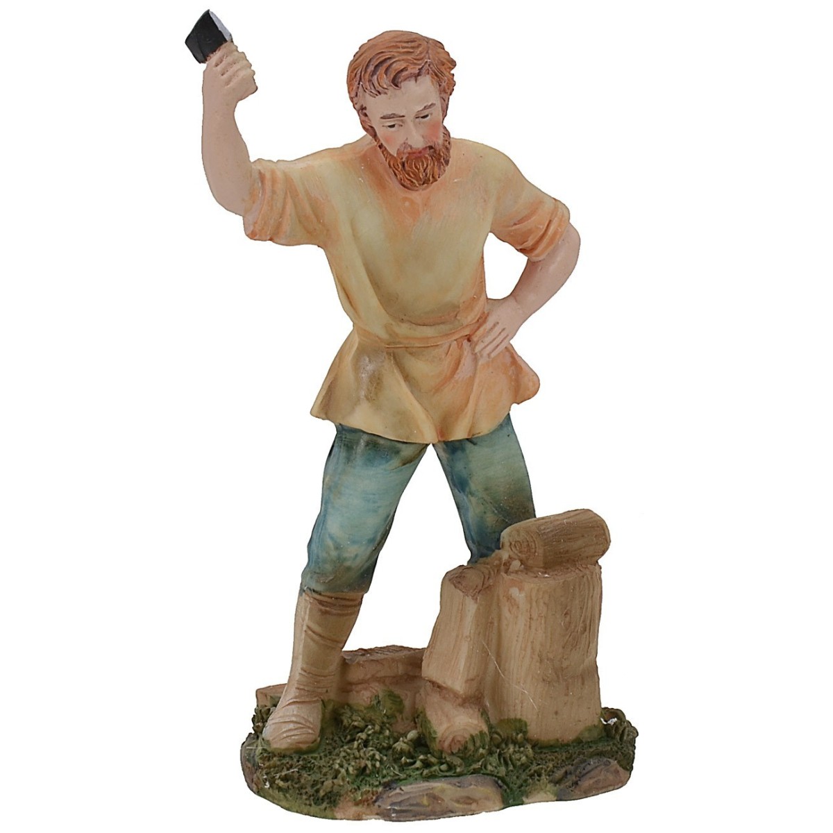 Hombre con hacha que corta leña serie 15 cm en resina pintada a mano.