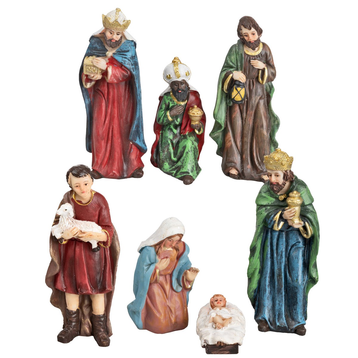 Conjunto de 7 piezas de la Natividad en resina, altura 12 cm.