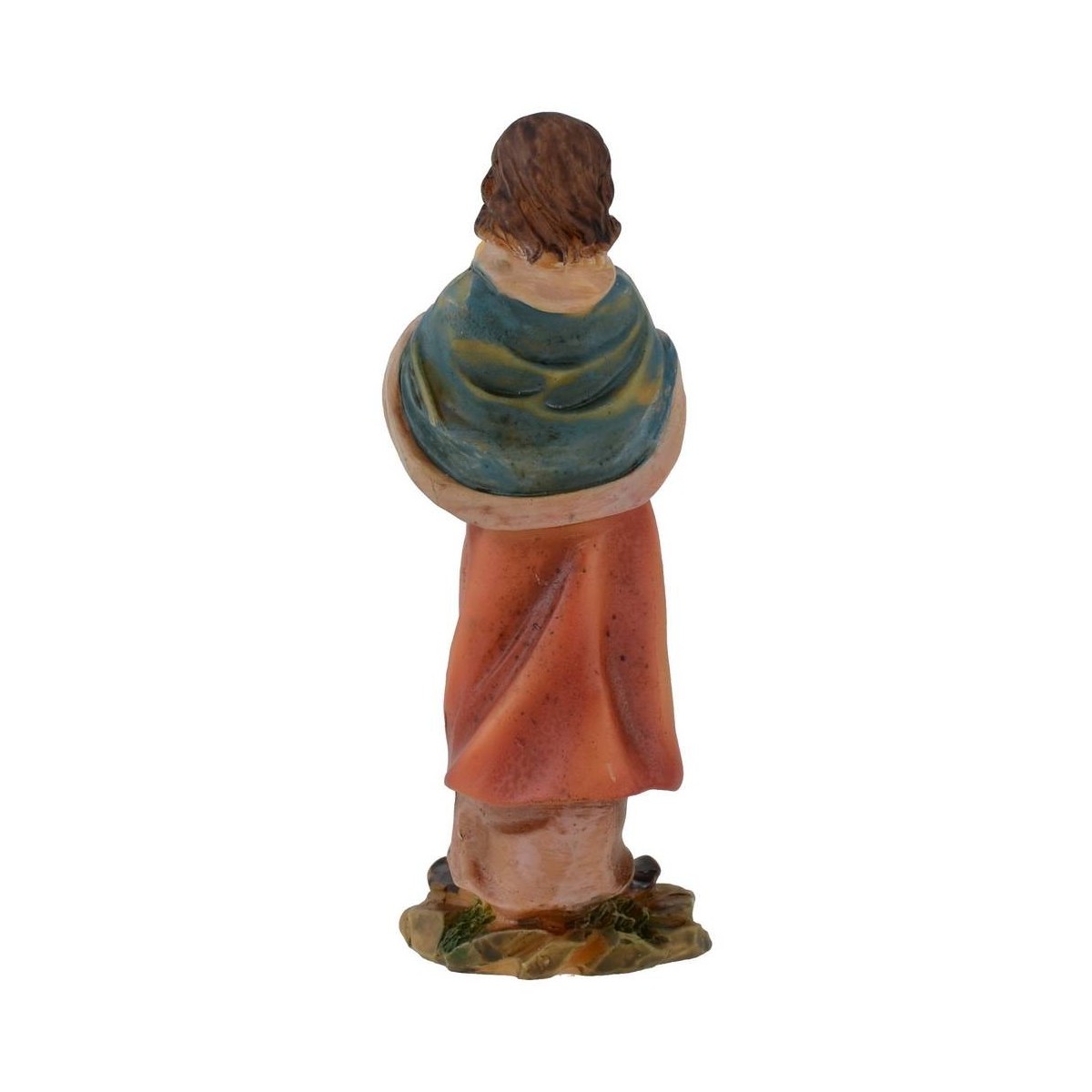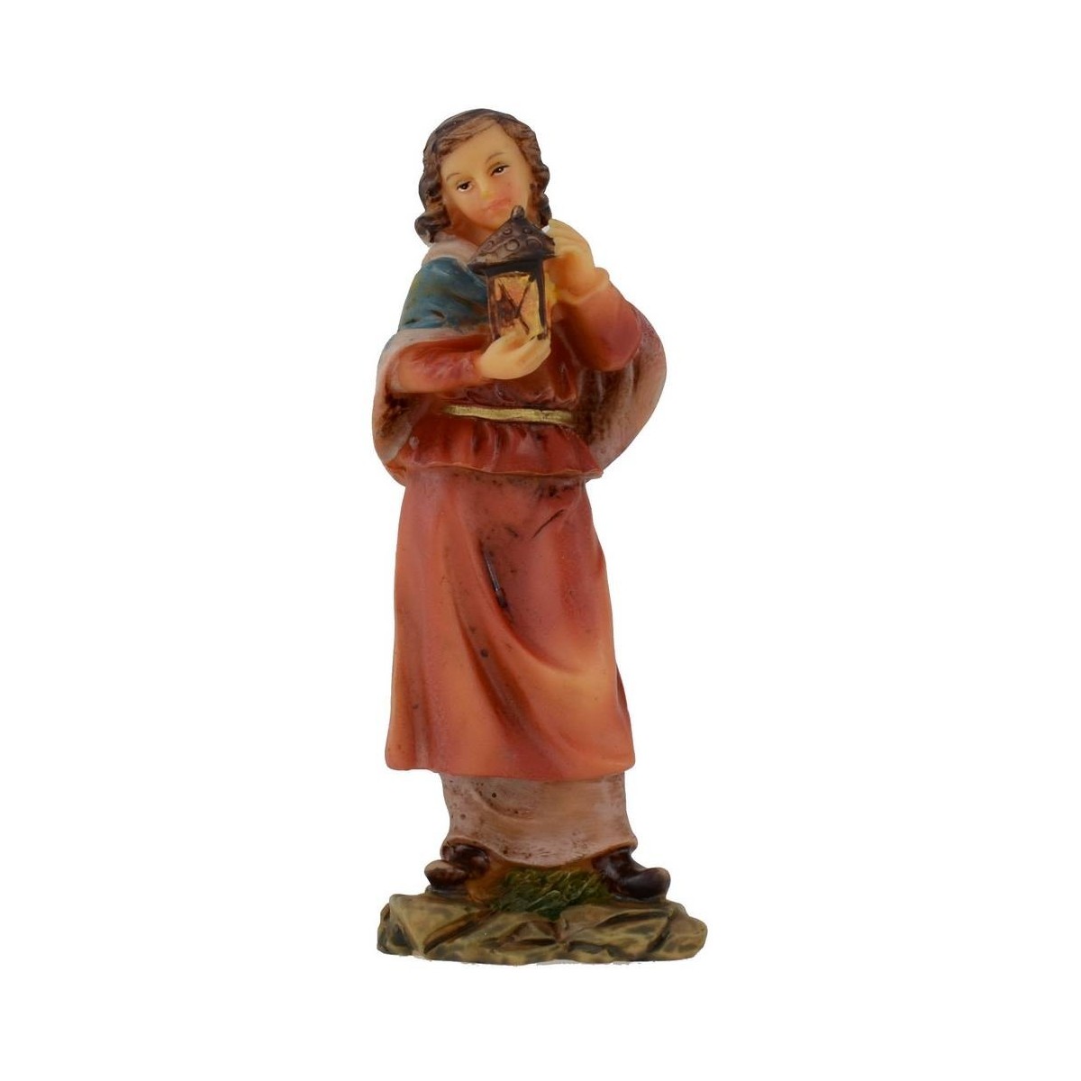 Mujer con linterna entre las manos y capa azul altura 12 cm en resina.