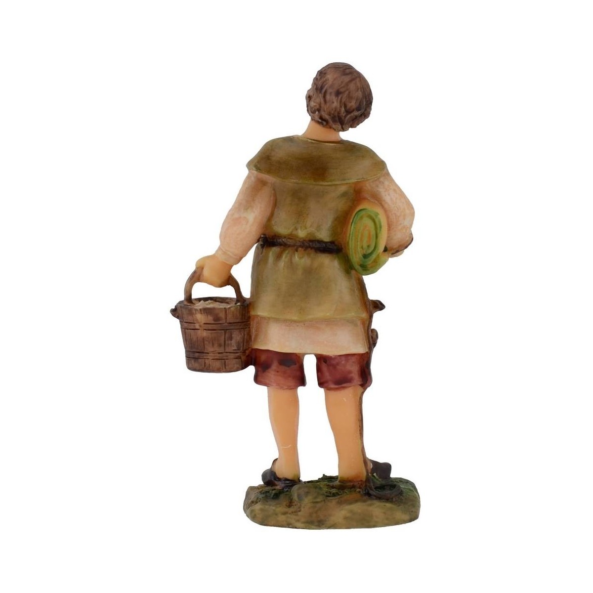 Pastor con cubo y manta bajo el brazo, altura 12 cm en resina.