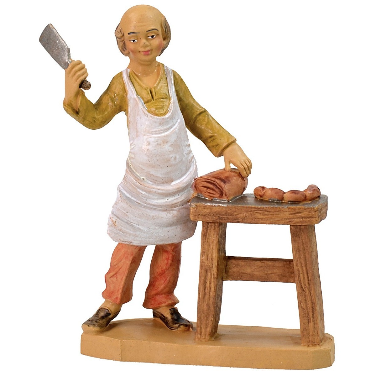 Carnecería con mostrador, serie lux 12 cm en pvc. Las estatuas de la misma serie tienen rostros expresivos y bien detallados.
