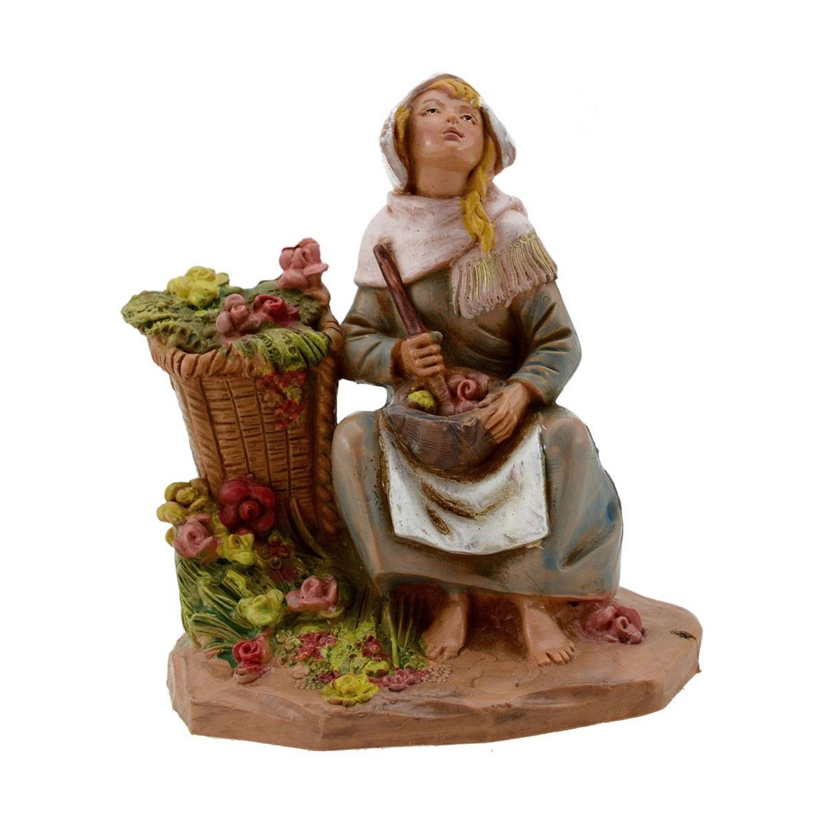 Mujer sentada en el trabajo con macetas de flores de Fontanini, serie 12 cm.