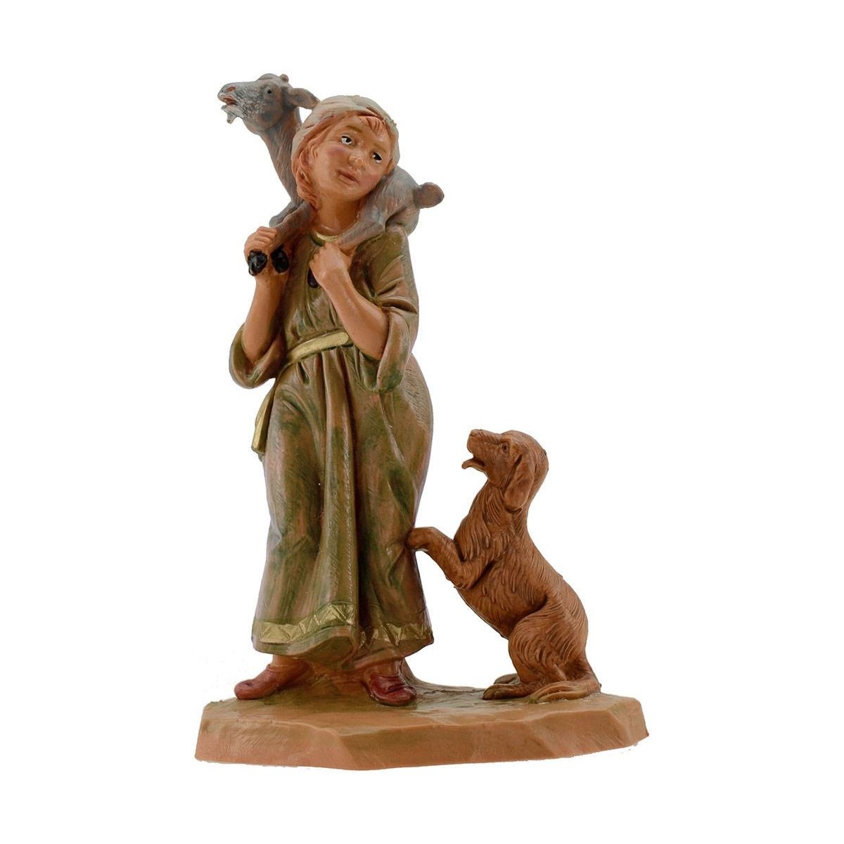 Joven pastor con perro y cabra sobre los hombros de Fontanini, serie 12 cm.