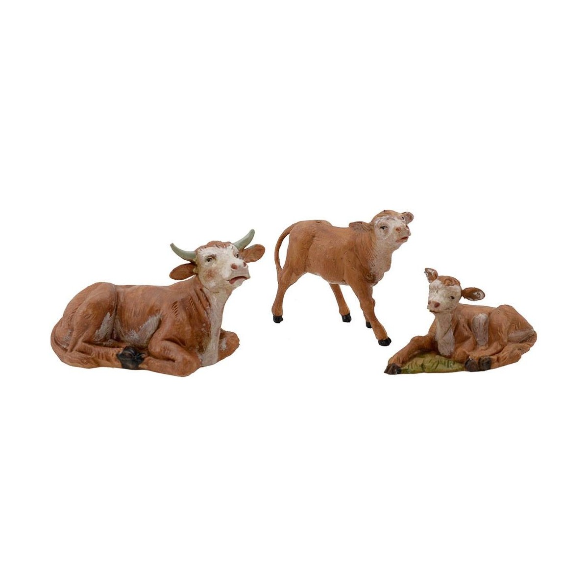 Familia de bovinos serie 12 cm Fontanini. El set está compuesto por el buey y dos terneros.