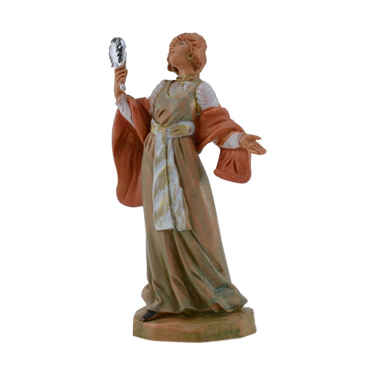 Mujer que se mira admirada serie 12 cm Fontanini pintada a mano. Las estatuas del belén tradicional Fontanini tienen rostros expresivos y bien acabados en los detalles.