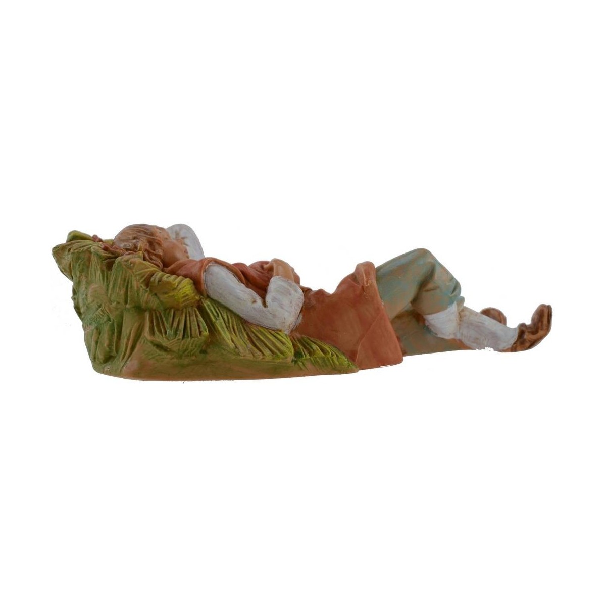 Durmiente acostado sobre paja serie 12 cm Fontanini pintado a mano. Las estatuas del pesebre tradicional Fontanini tienen rostros expresivos y bien acabados en los detalles.