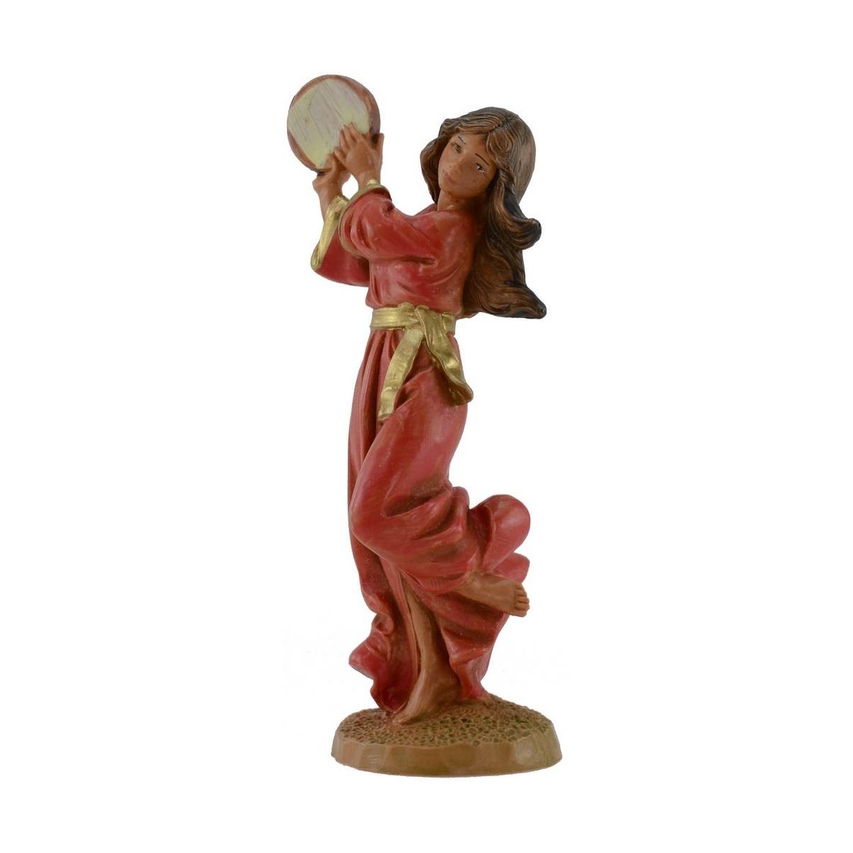 Bailarina con pandereta serie 12 cm Fontanini pintada a mano. Las estatuas del pesebre tradicional Fontanini tienen rostros expresivos y bien acabados en los detalles.