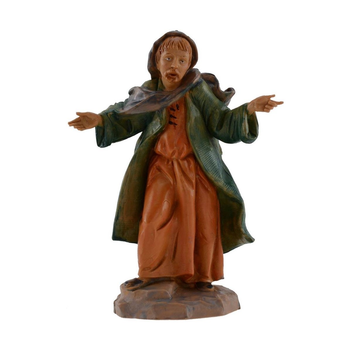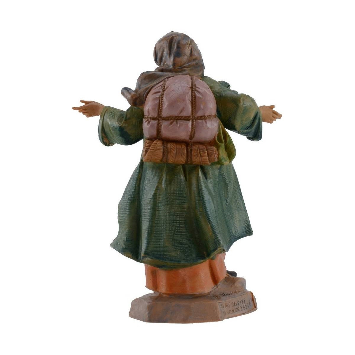 Viajero con mochila serie 12 cm Fontanini pintado a mano. Las estatuas del belén tradicional Fontanini tienen rostros expresivos y bien acabados en los detalles.