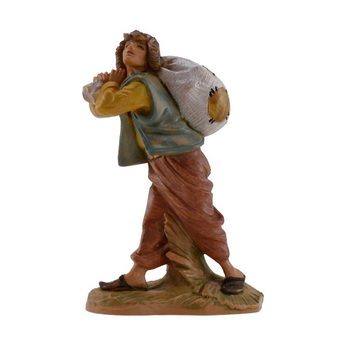 Molinero con saco de harina serie 12 cm Fontanini pintado a mano. Las estatuas del pesebre tradicional Fontanini tienen rostros expresivos y bien acabados en los detalles.