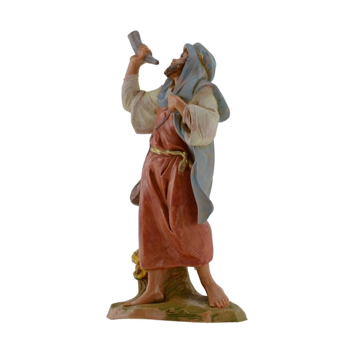 Tocador de cuerno serie 12 cm Fontanini pintado a mano. Las estatuas del pesebre tradicional Fontanini tienen rostros expresivos y bien detallados.