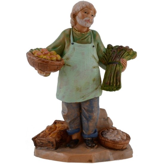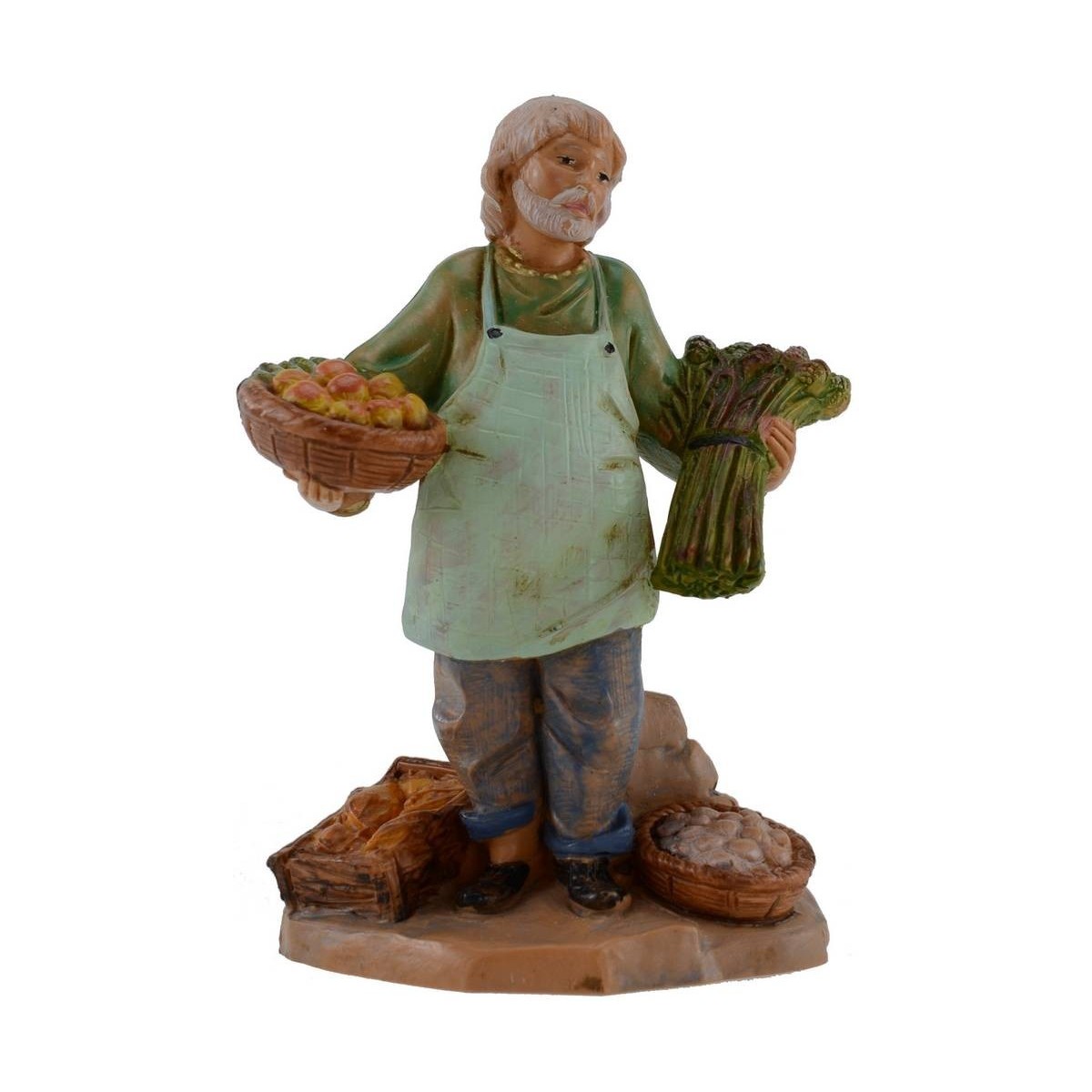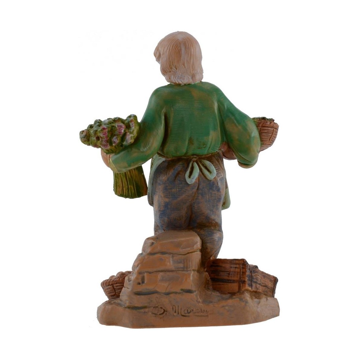 Frutero con hortalizas serie 12 cm Fontanini pintado a mano. Las estatuas del pesebre tradicional Fontanini tienen rostros expresivos y bien detallados.