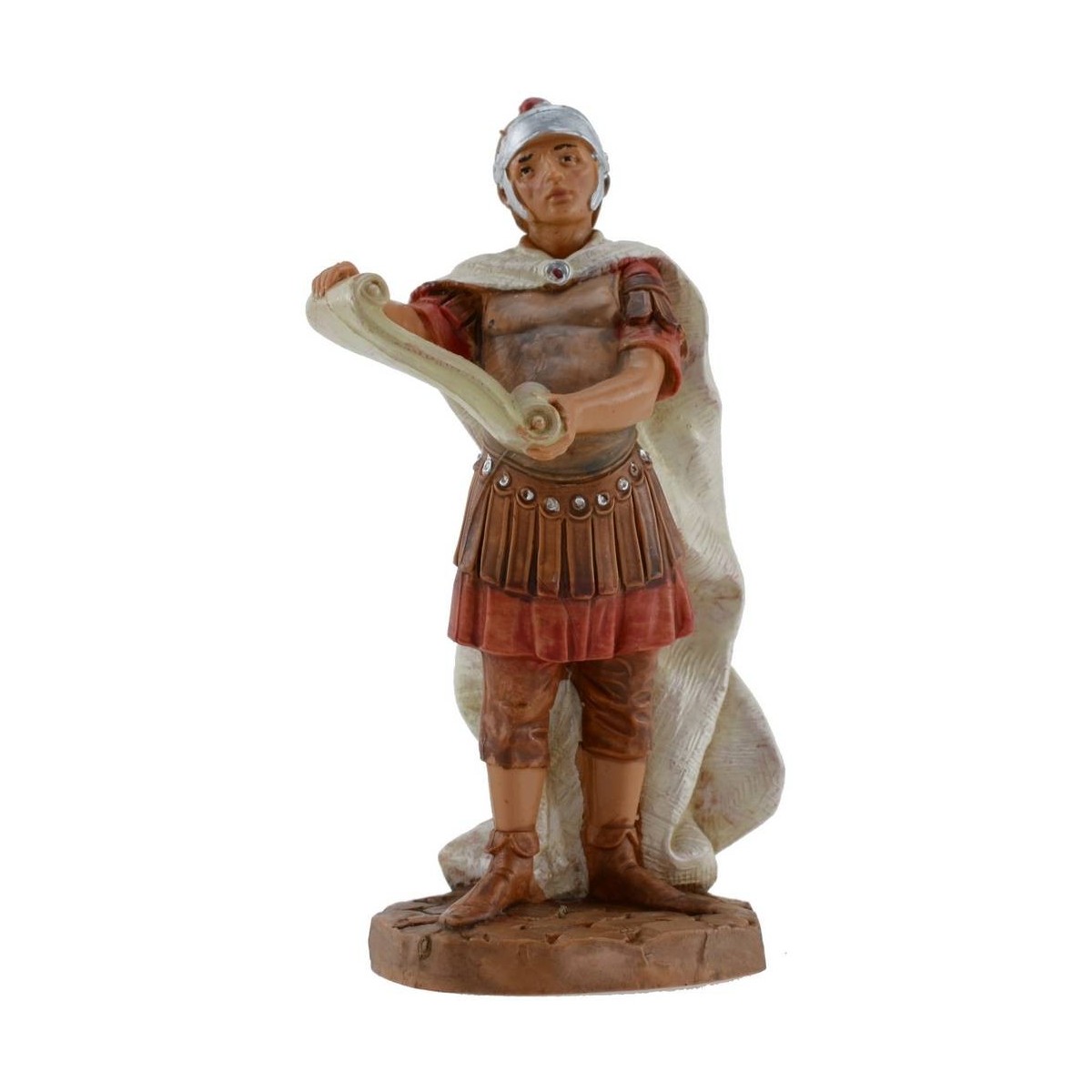 Soldado romano o centurión con pergamino serie 12 cm Fontanini pintado a mano. Las estatuas del pesebre tradicional Fontanini tienen rostros expresivos y bien detallados.