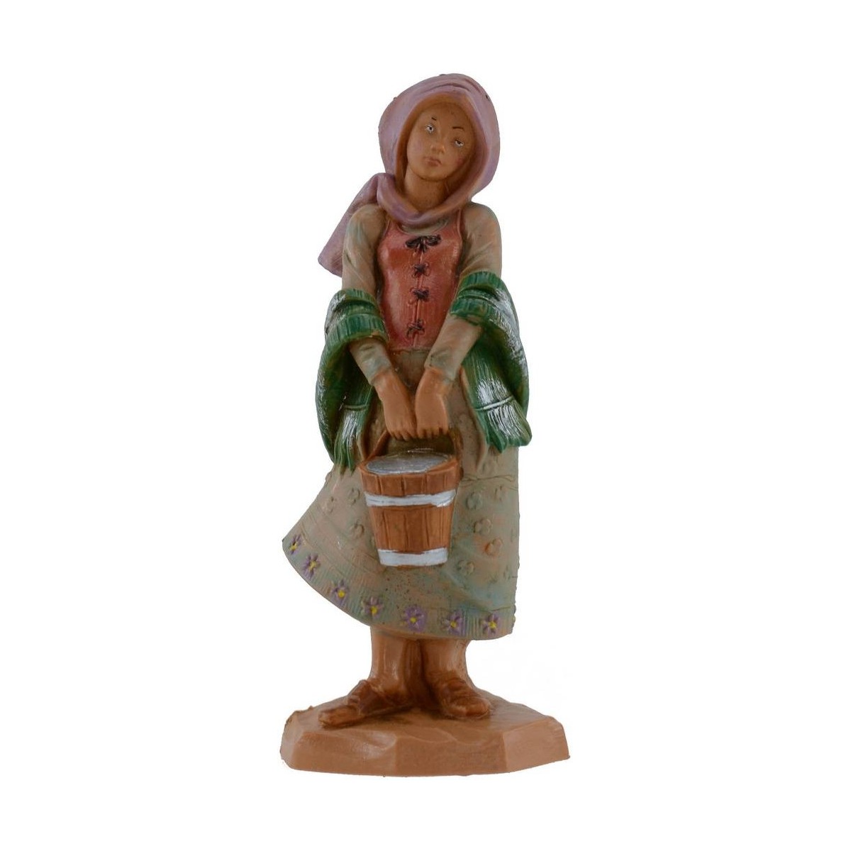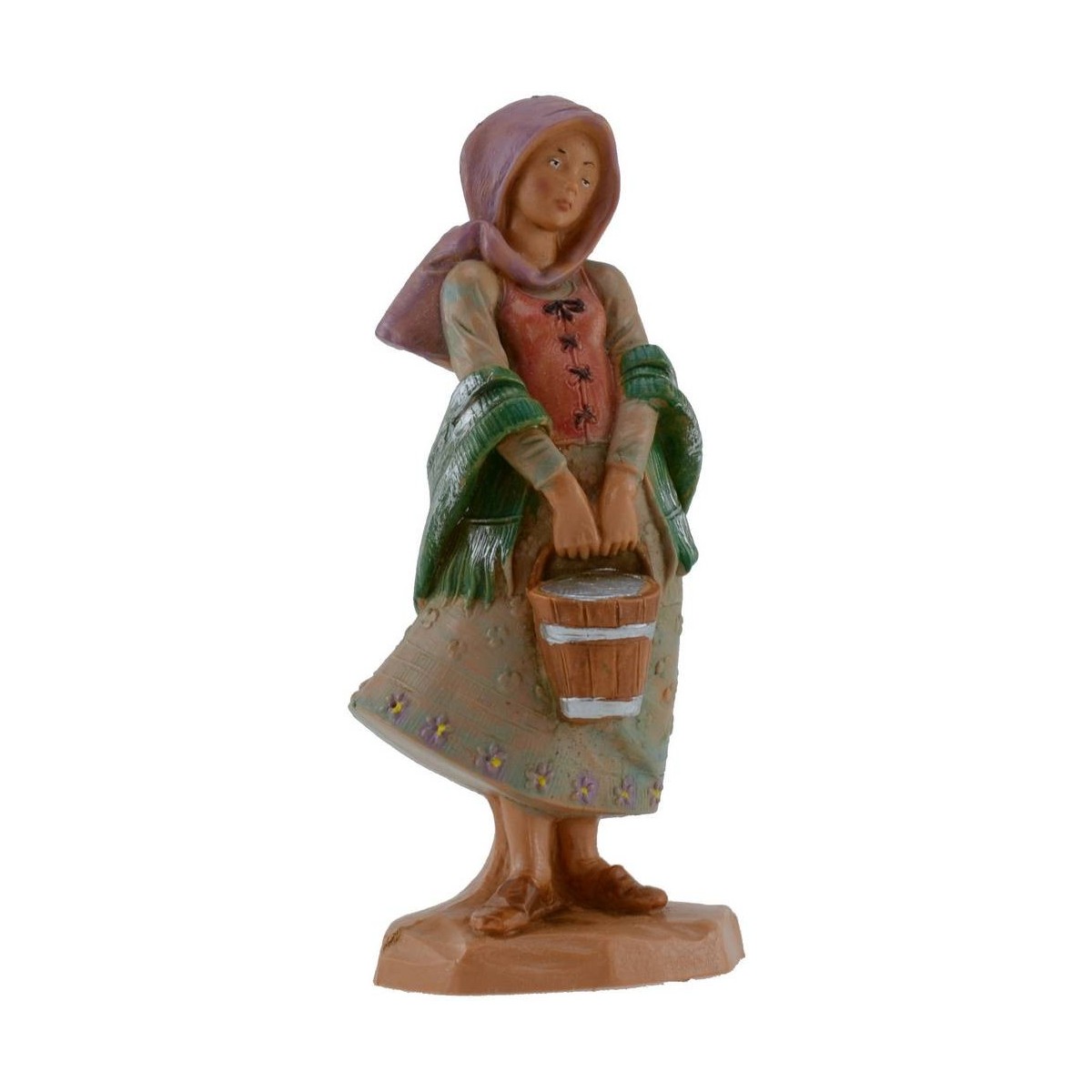 Mujer oriental con cubo de agua, serie 12 cm Fontanini pintada a mano. Las estatuas del belén tradicional Fontanini tienen rostros expresivos y bien detallados.