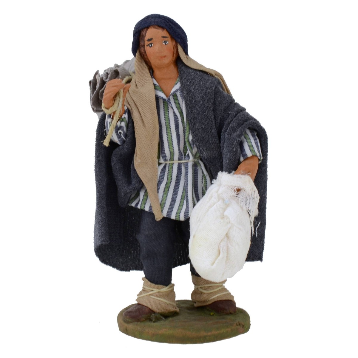 Molinero con sacos de harina o grano. La estatua es de terracota bien acabada en todos los mínimos detalles con ropa de tela endurecida, al ser realizada completamente a mano, los colores de la ropa y del rostro podrían variar ligeramente respecto a la foto. Producto artesanal realizado por los mejores artistas italianos.