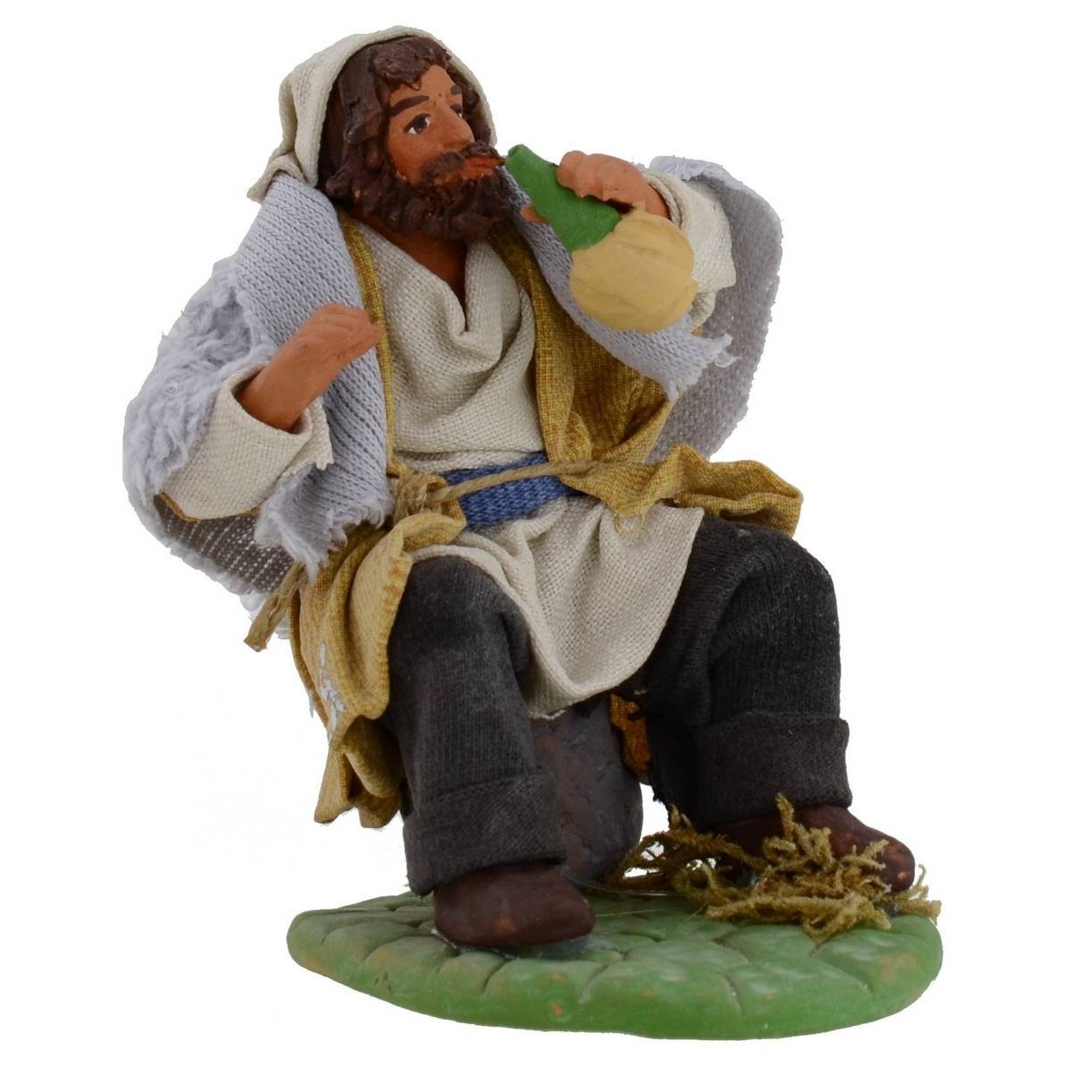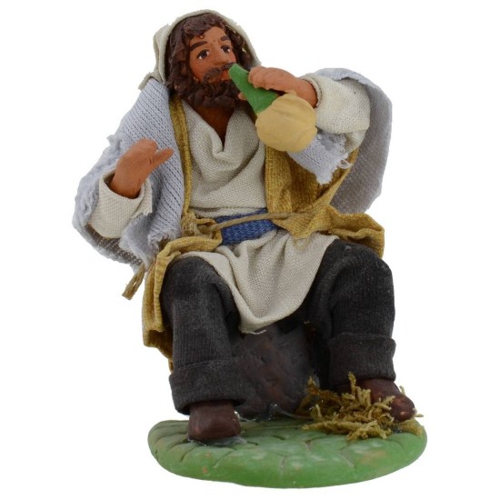 Hombre sentado bebiendo de la botella. La estatua está hecha de terracota bien acabada en todos los mínimos detalles con ropa de tela endurecida, al estar realizada completamente a mano, los colores de la ropa y la cara podrían variar ligeramente respecto a la foto. Producto artesanal realizado por los mejores artistas italianos.