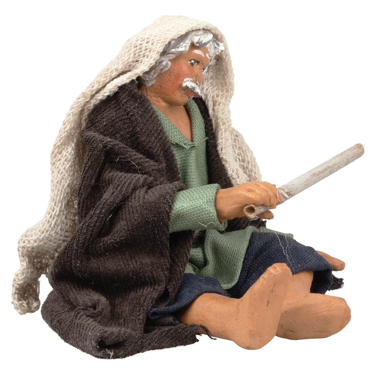 Hombre sentado avivando el fuego serie 12 cm para belén Mondo