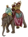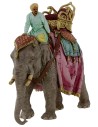 Hermosa escena en resina serie Landi Moranduzzo 13 cm proporcionada y cuidada en cada mínimo detalle que representa al Cornac, es decir, el hombre con el turbante y los clásicos vestidos orientales, que monta su elefante. El animal es sorprendentemente realista, tanto que se pueden notar en relieve todas las arrugas de su piel, y está caracterizado por las preciosas decoraciones. Los colores y los detalles atraen inmediatamente la atención, como por ejemplo el tocado del elefante, así como los paños en el lomo, todos diseñados con bajorrelieves y el trono dorado que domina toda la composición. Este artículo no tiene igual por su originalidad y calidad, realmente puede hacer único tu Belén.