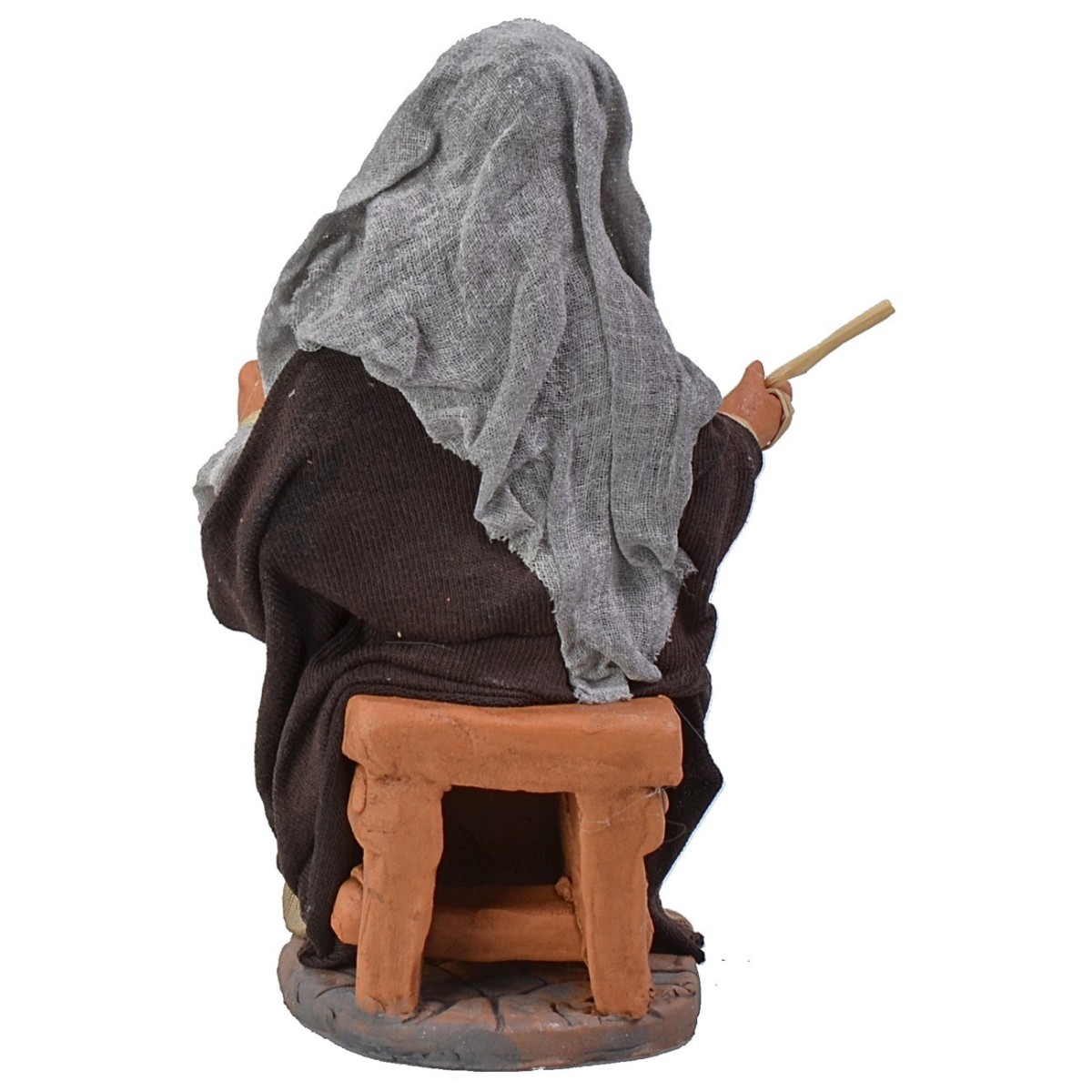 Mujer sentada trenzando una cesta. La estatua de terracota está bien acabada y lleva ropa de tela endurecida; al haber sido realizada completamente a mano, los colores de la ropa y del rostro pueden variar con respecto a la foto. El artículo ha sido producido artesanalmente en Italia.