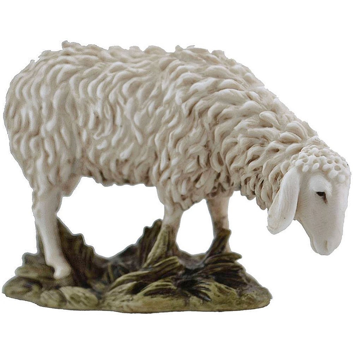 Oveja en resina serie Landi Moranduzzo 15 cm; esculpida hábilmente por las manos expertas del escultor homónimo Martino Landi. Toda la serie está pintada a mano y producida enteramente en Italia. Esta serie es conocida por sus líneas armoniosas y expresivas, y por los delicados matices de color que contribuyen a hacer las figuras del belén aún más realistas.