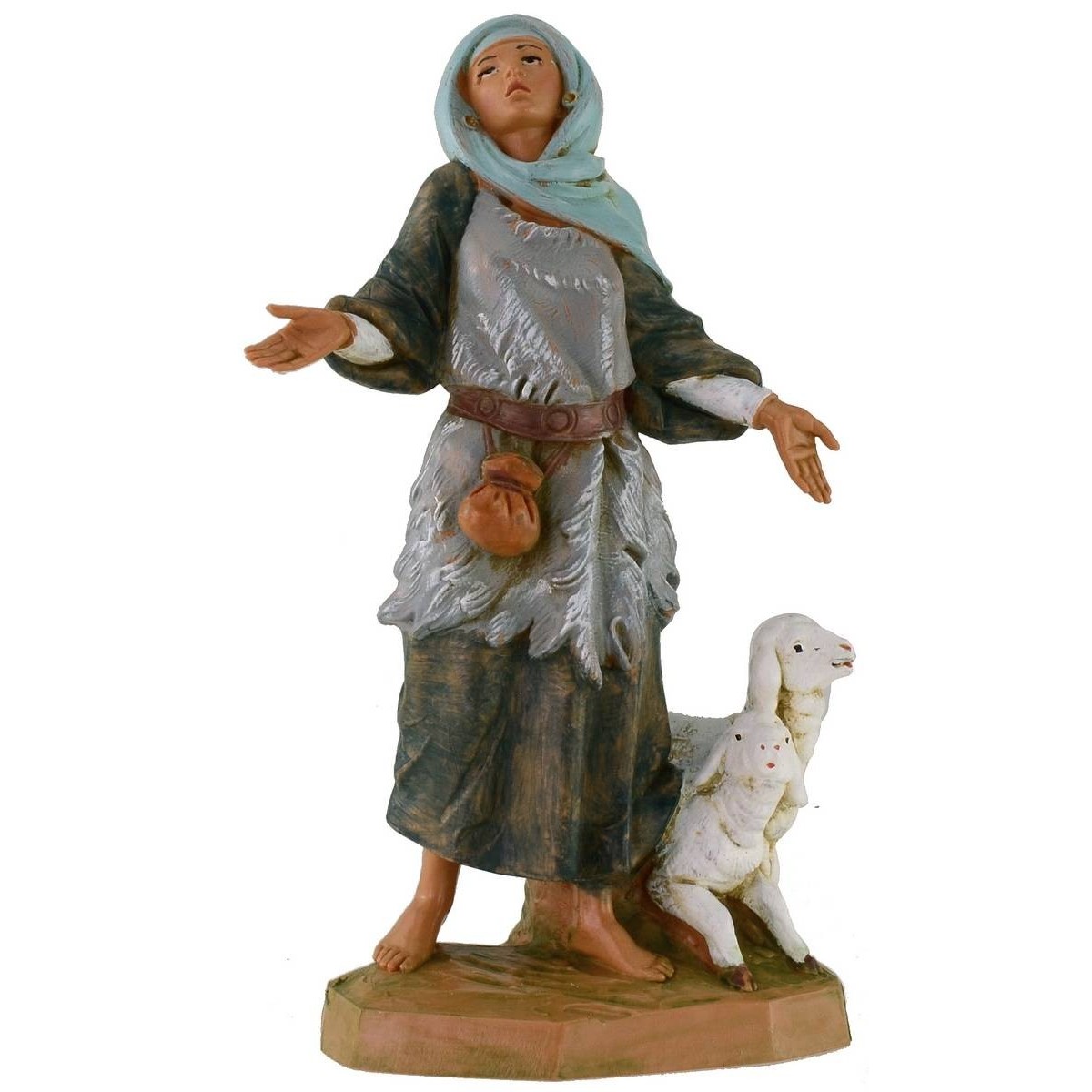 Pastorcilla maravillada con ovejas 19 cm Fontanini pintada a mano. Las estatuas del belén tradicional Fontanini tienen rostros expresivos y bien acabados en los detalles.