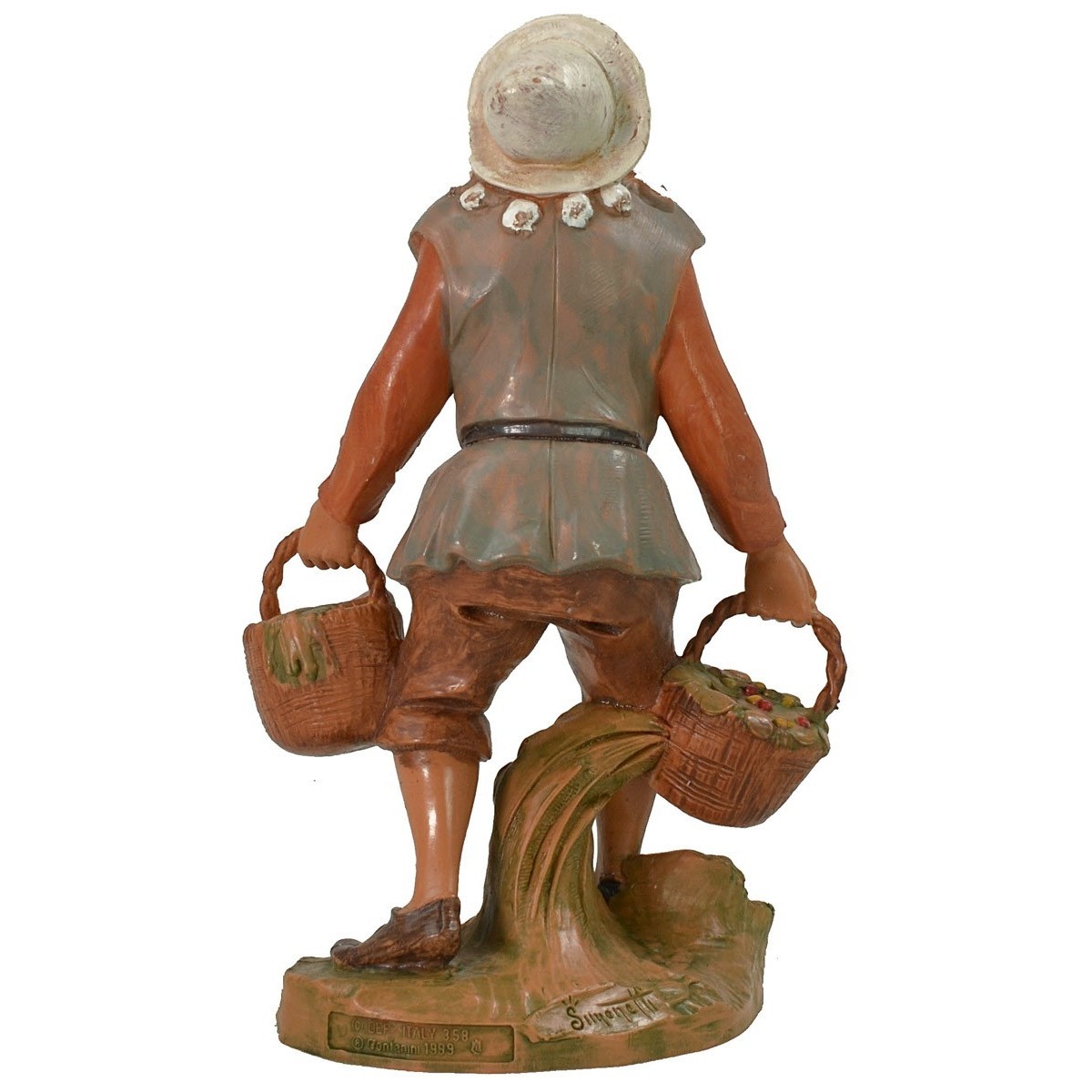 Viejo con cestas 19 cm Fontanini pintado a mano. Las estatuas del pesebre tradicional Fontanini tienen rostros expresivos y bien acabados en los detalles.