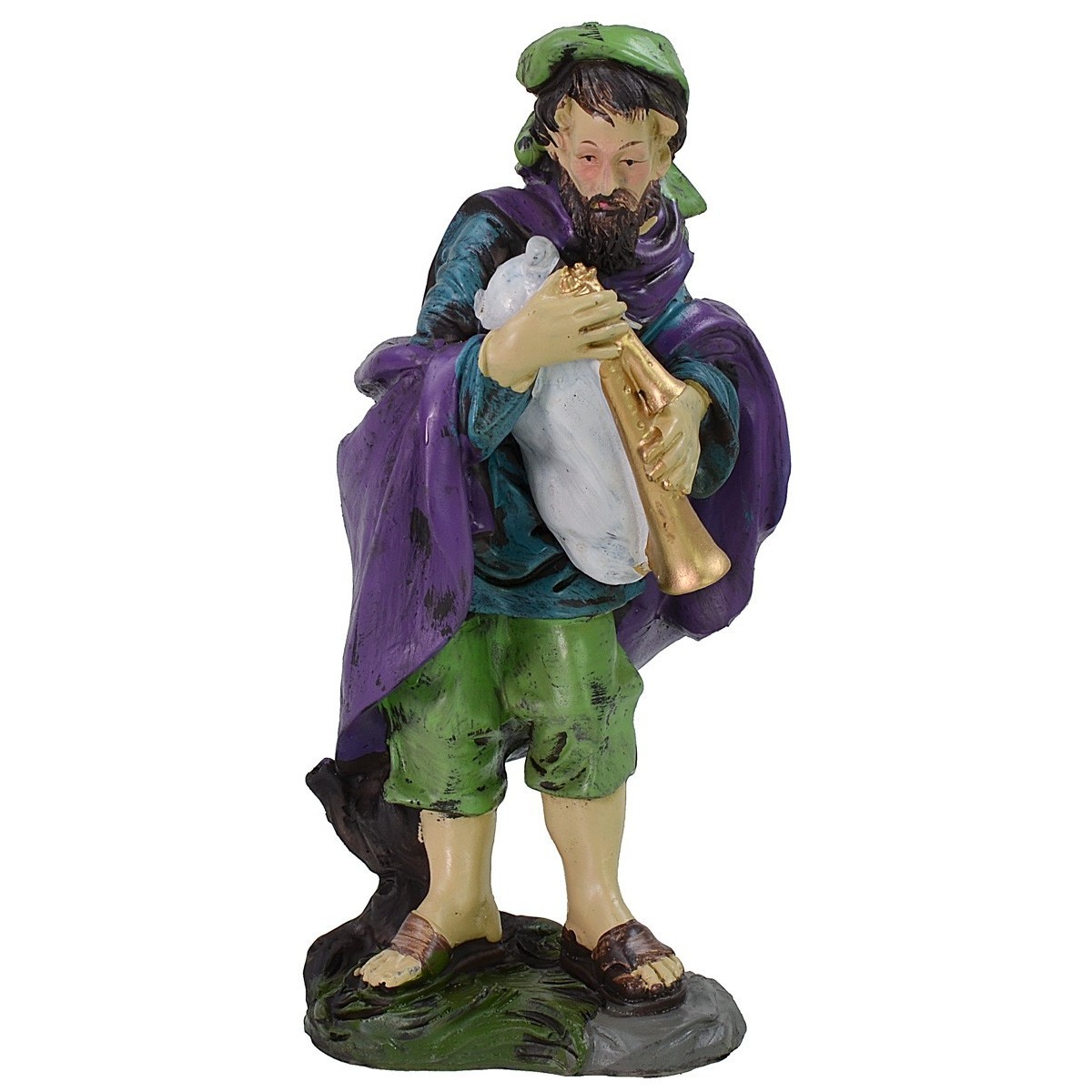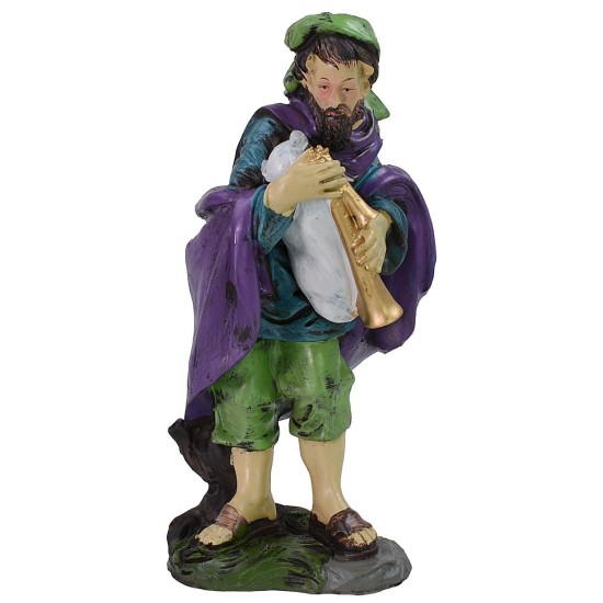 Zampognaro de resina de 20 cm envuelto en un gran manto.