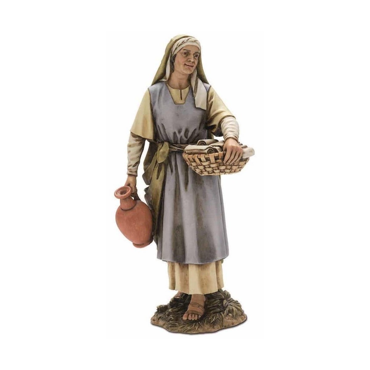 Partera en resina serie Landi Moranduzzo 20 cm; esculpida hábilmente por las manos del escultor homónimo Martino Landi. Toda la serie está pintada a mano y producida enteramente en Italia. Esta serie de estatuas para el pesebre es conocida por sus líneas armoniosas y expresivas, por las delicadas tonalidades de color que contribuyen a hacer las figuras del pesebre aún más realistas.