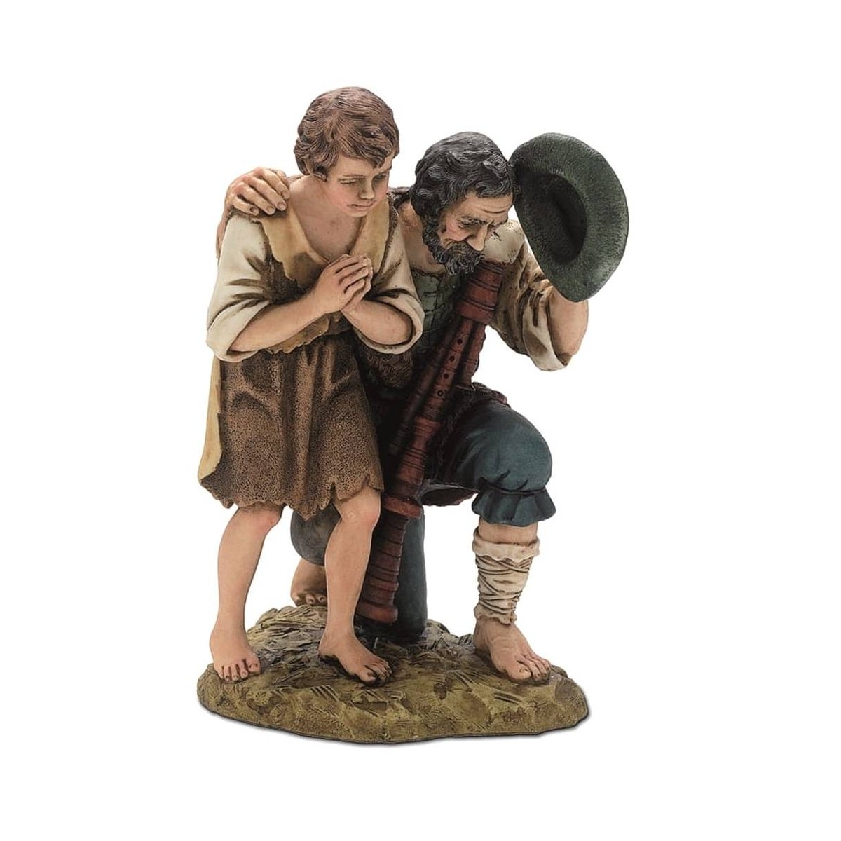 Dos pastores de resina serie Landi Moranduzzo 20 cm; hábilmente esculpidos por las manos expertas del escultor homónimo Martino Landi. Toda la serie está pintada a mano y enteramente producida en Italia. Esta serie de estatuas para belén es conocida por sus líneas armoniosas y expresivas, por las delicadas sombras de color que contribuyen a hacer las figuras del belén aún más realistas.